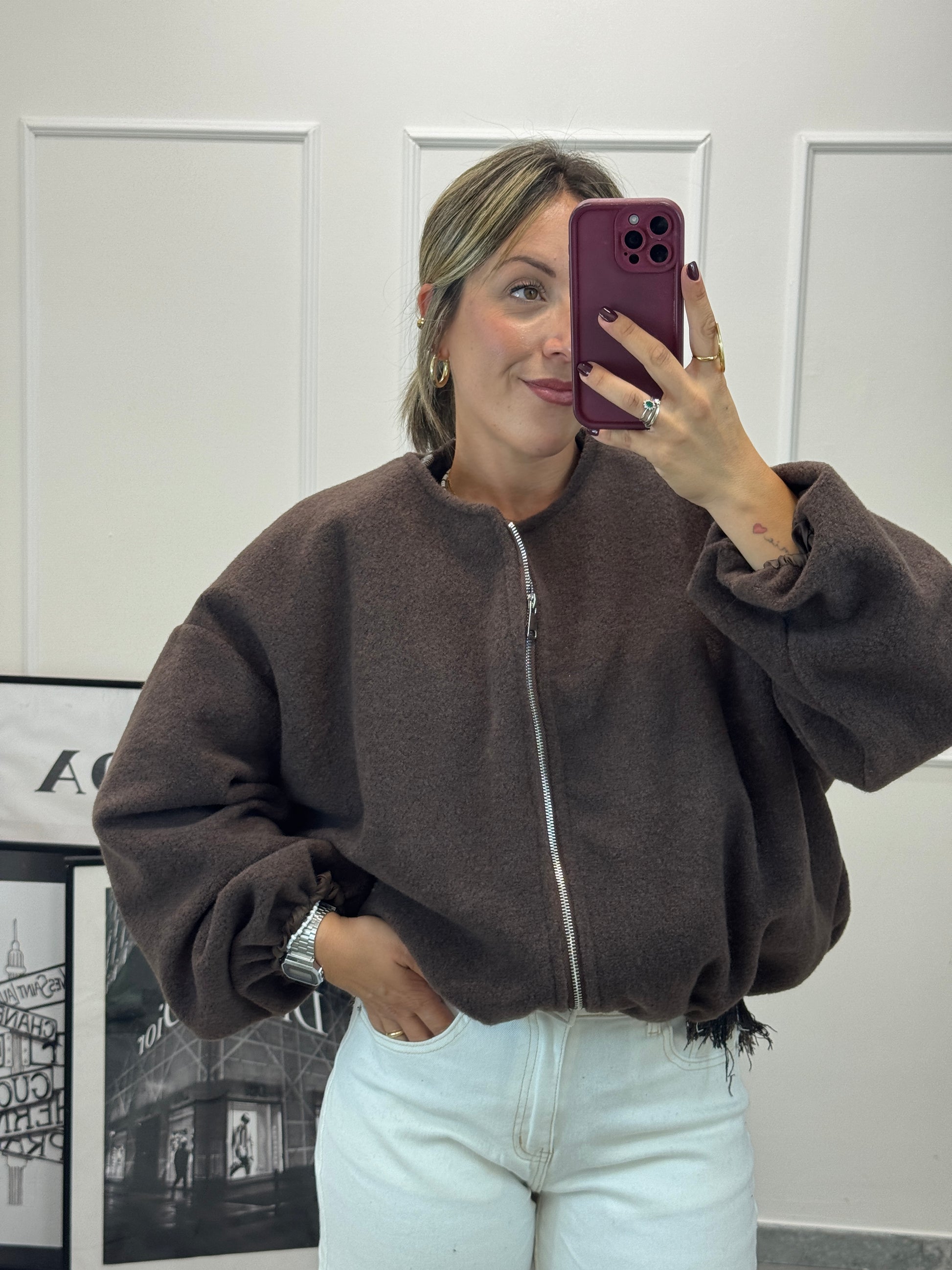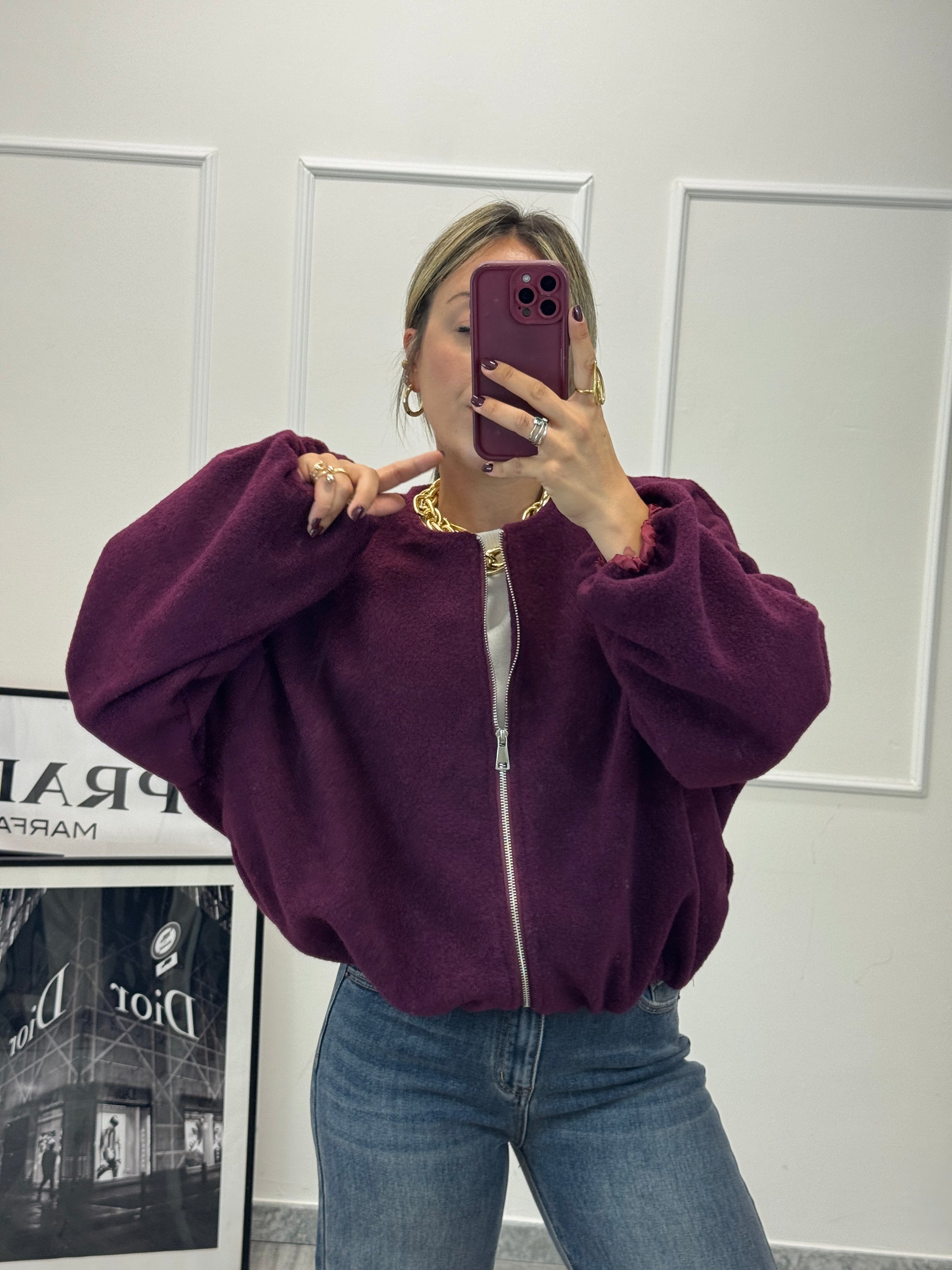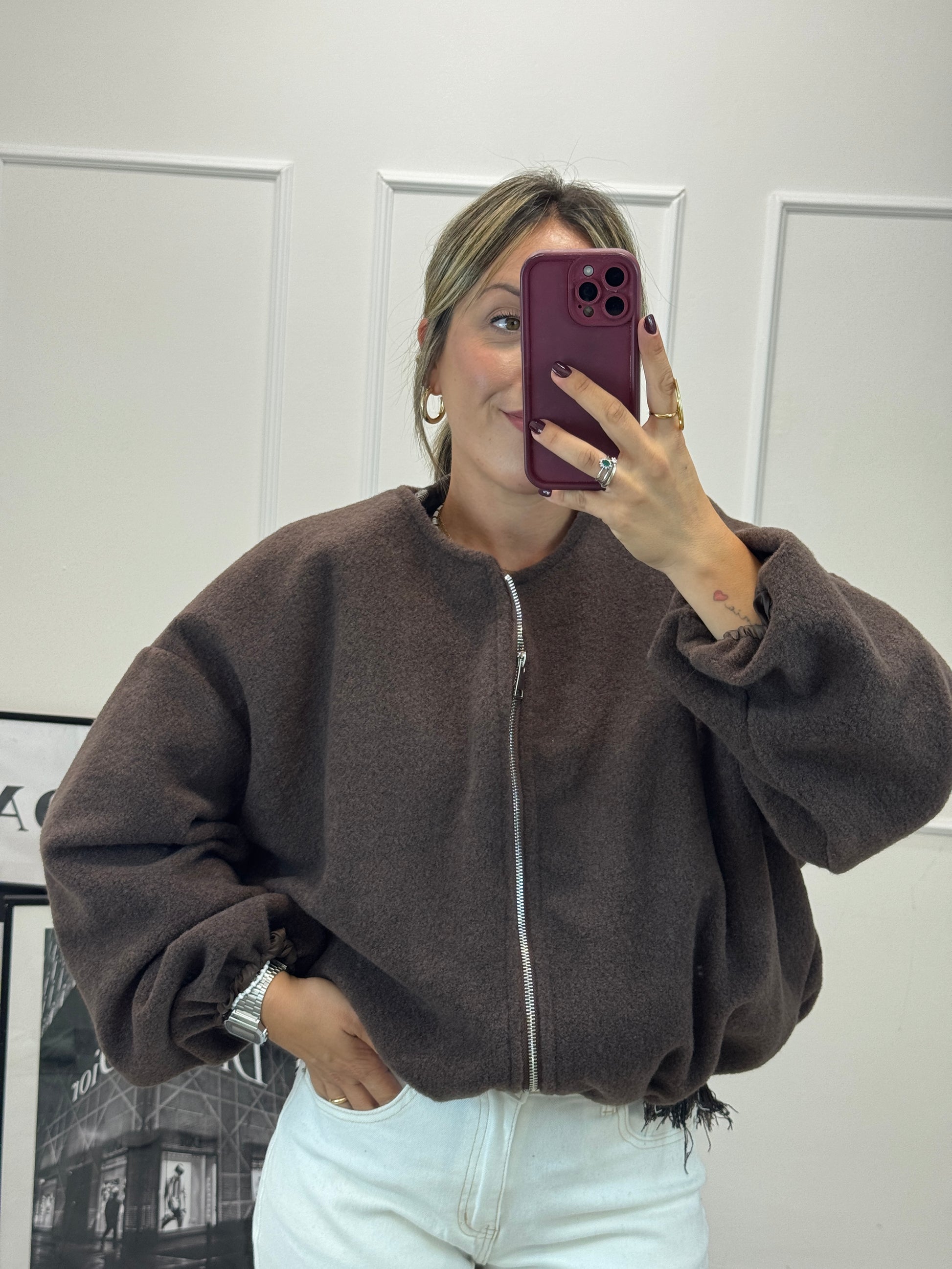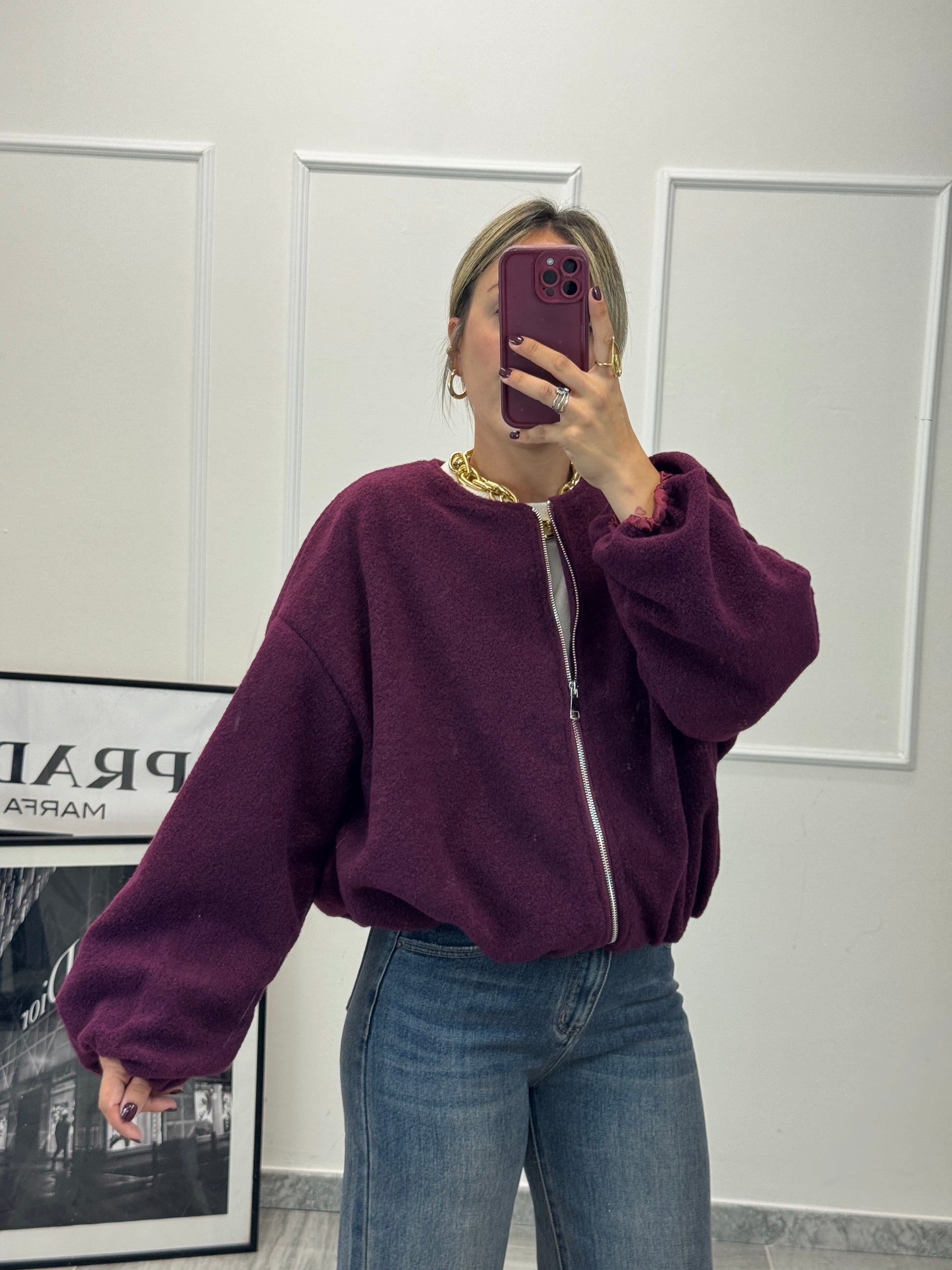 Bomber imbottito effetto boucle con zip. Elastico sotto e sul polso vestibilità over