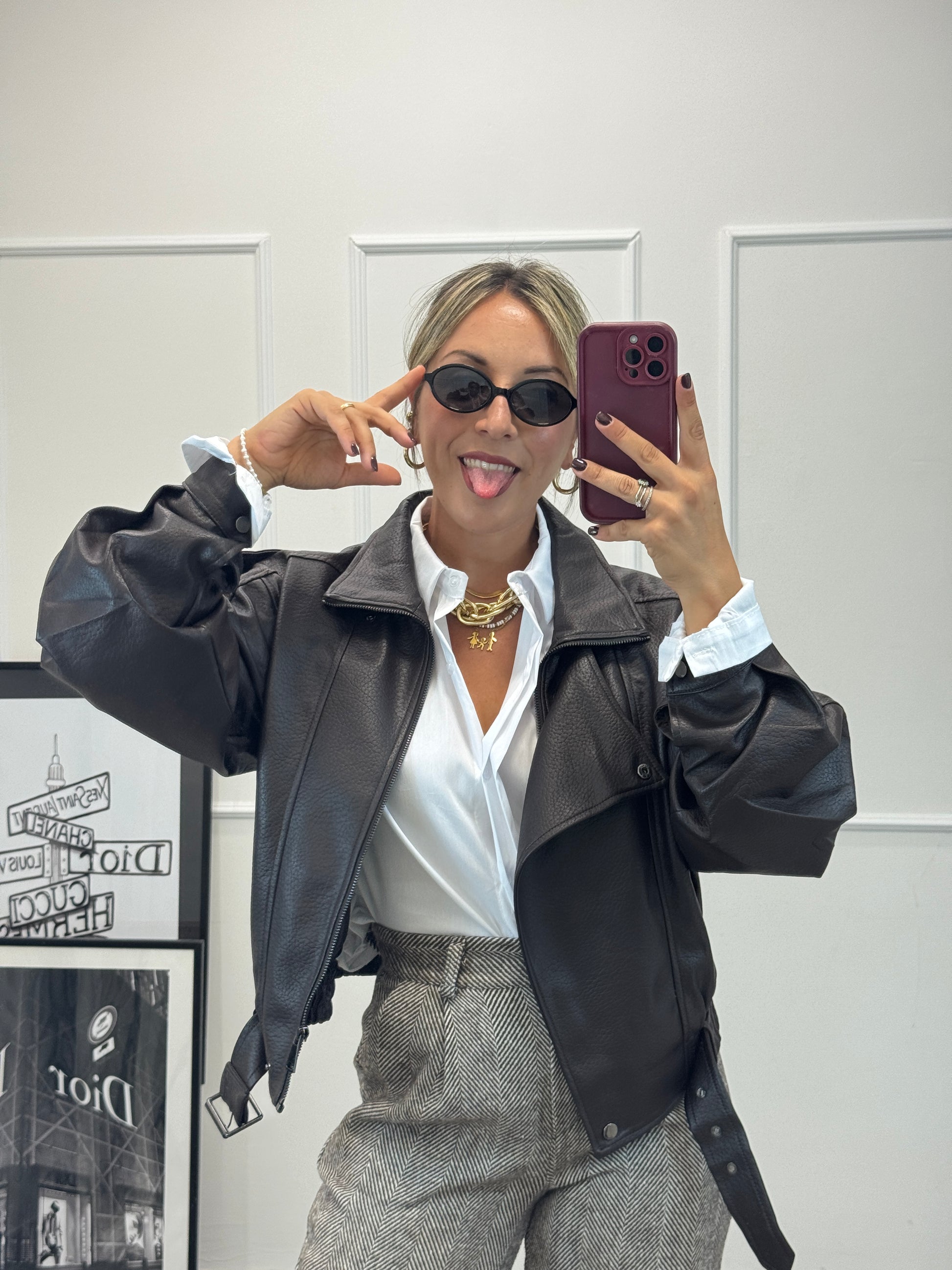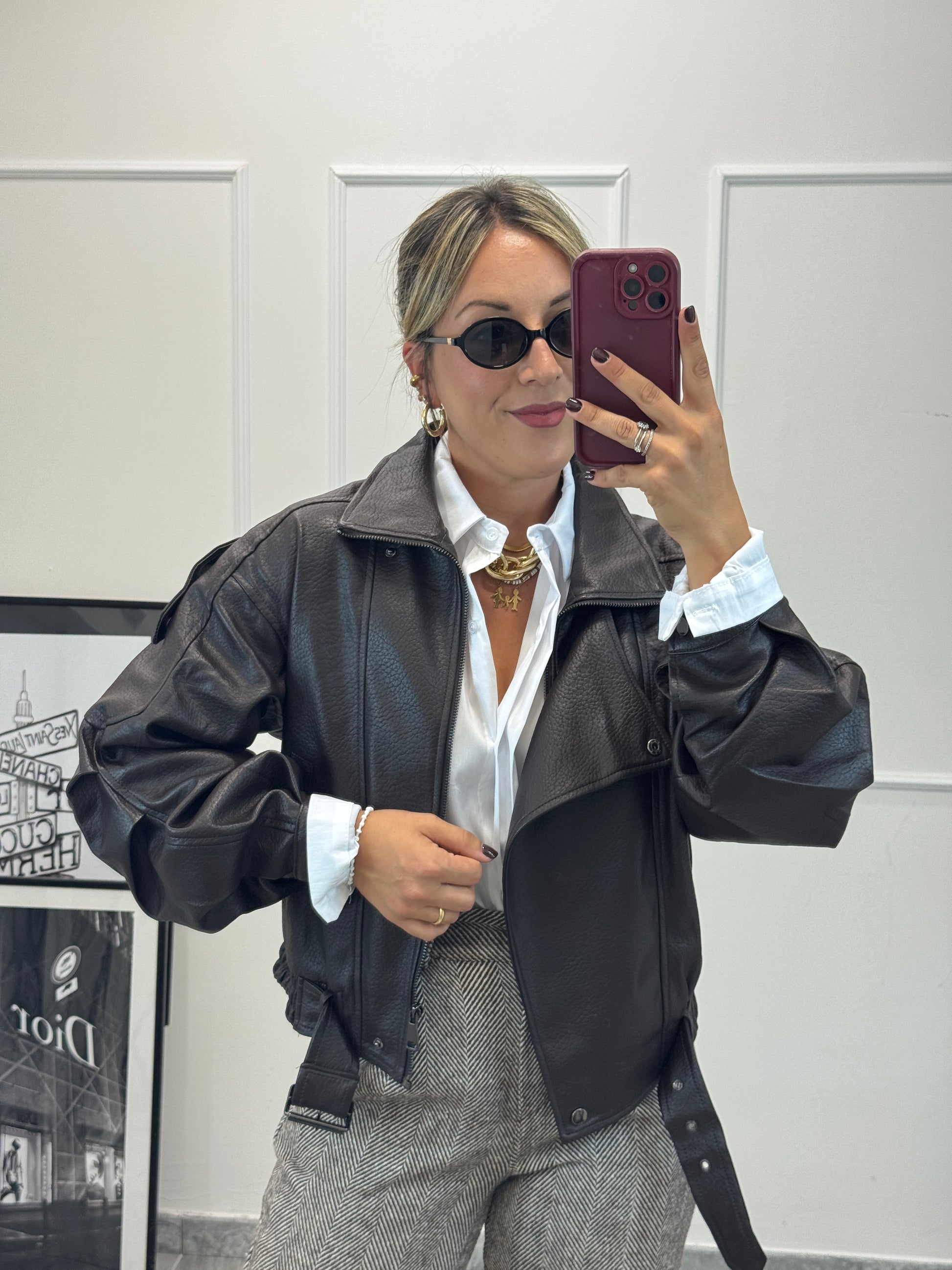 Bomber in ecopelle morbida vestibilità oversize