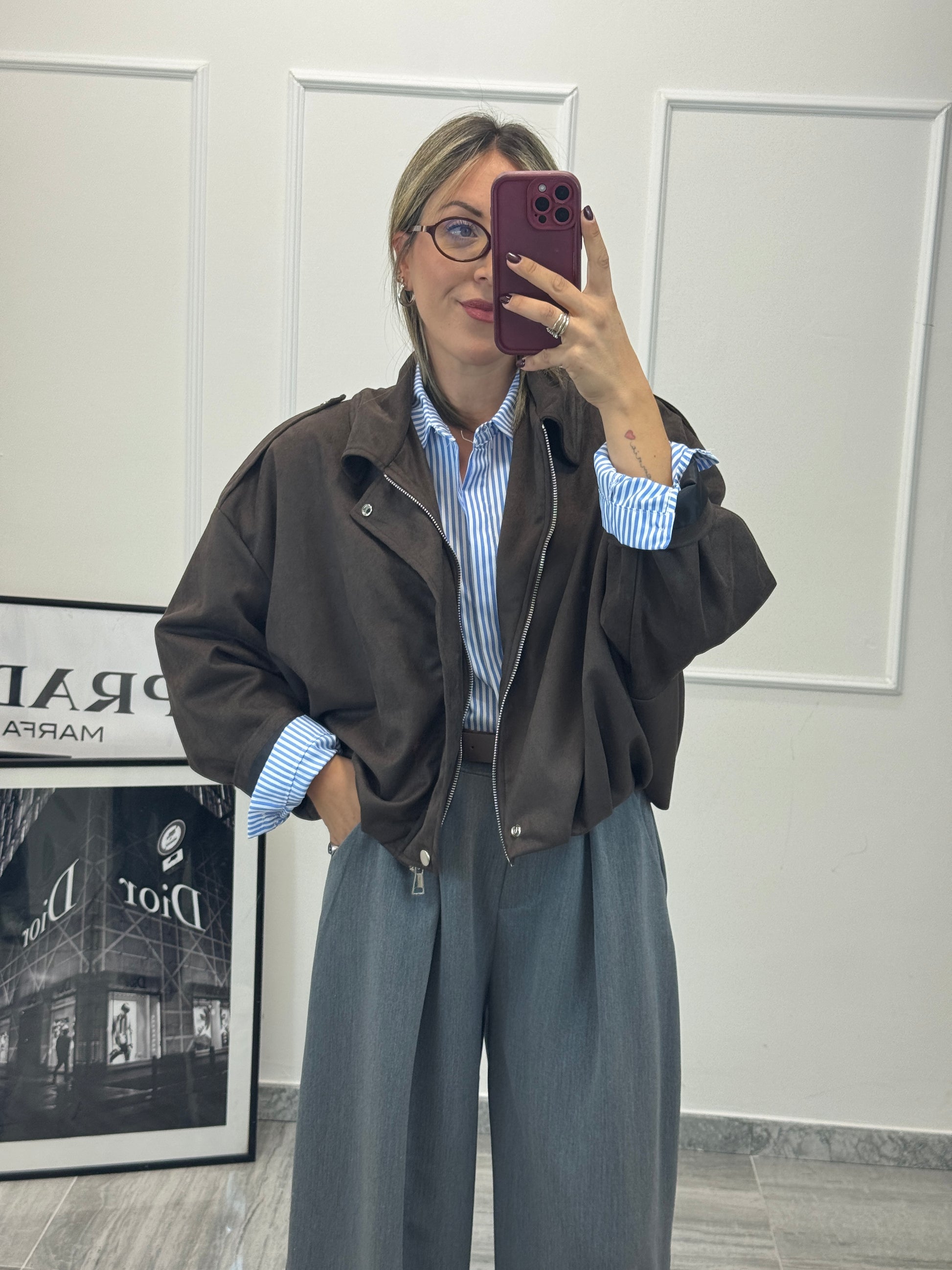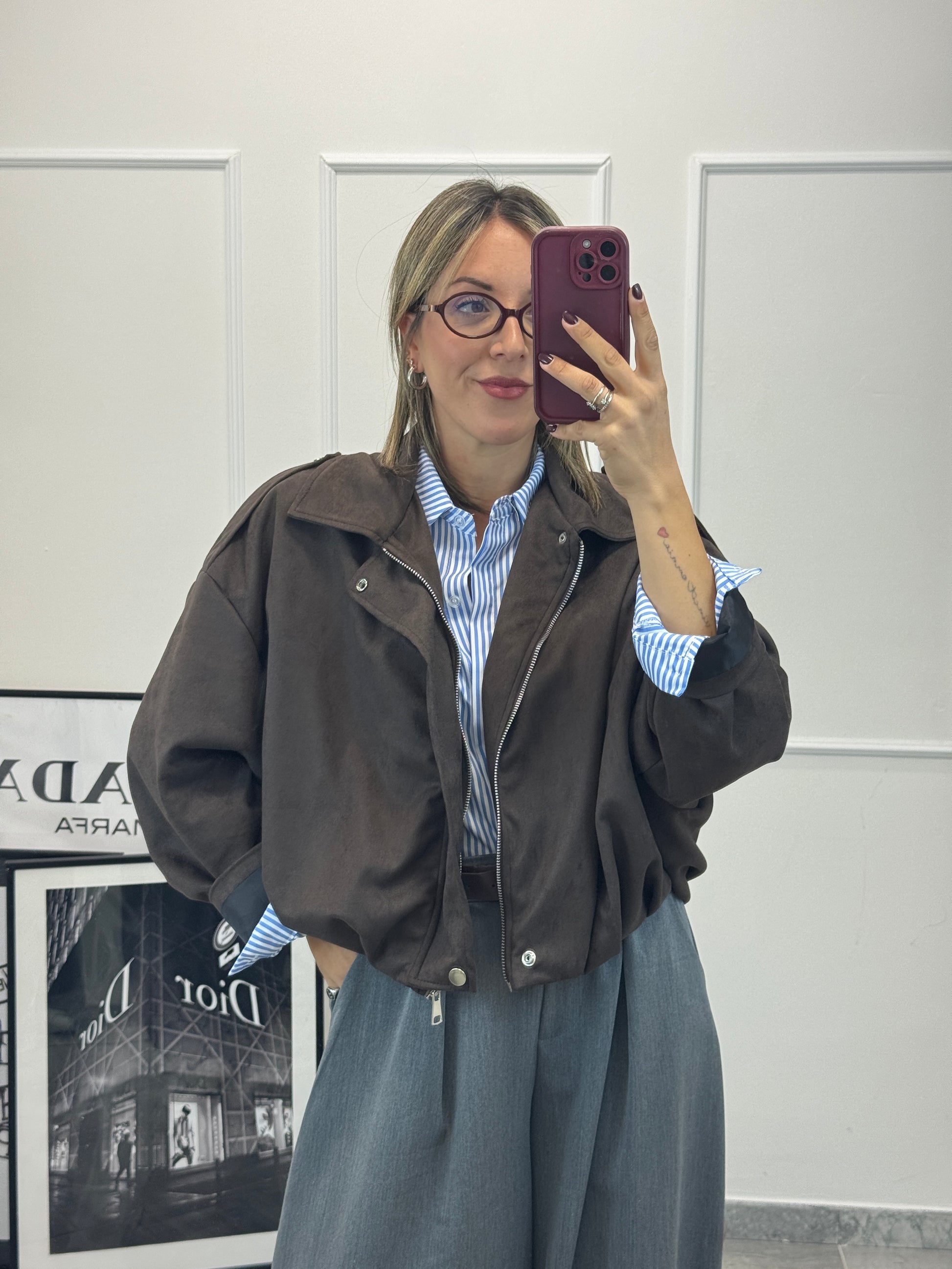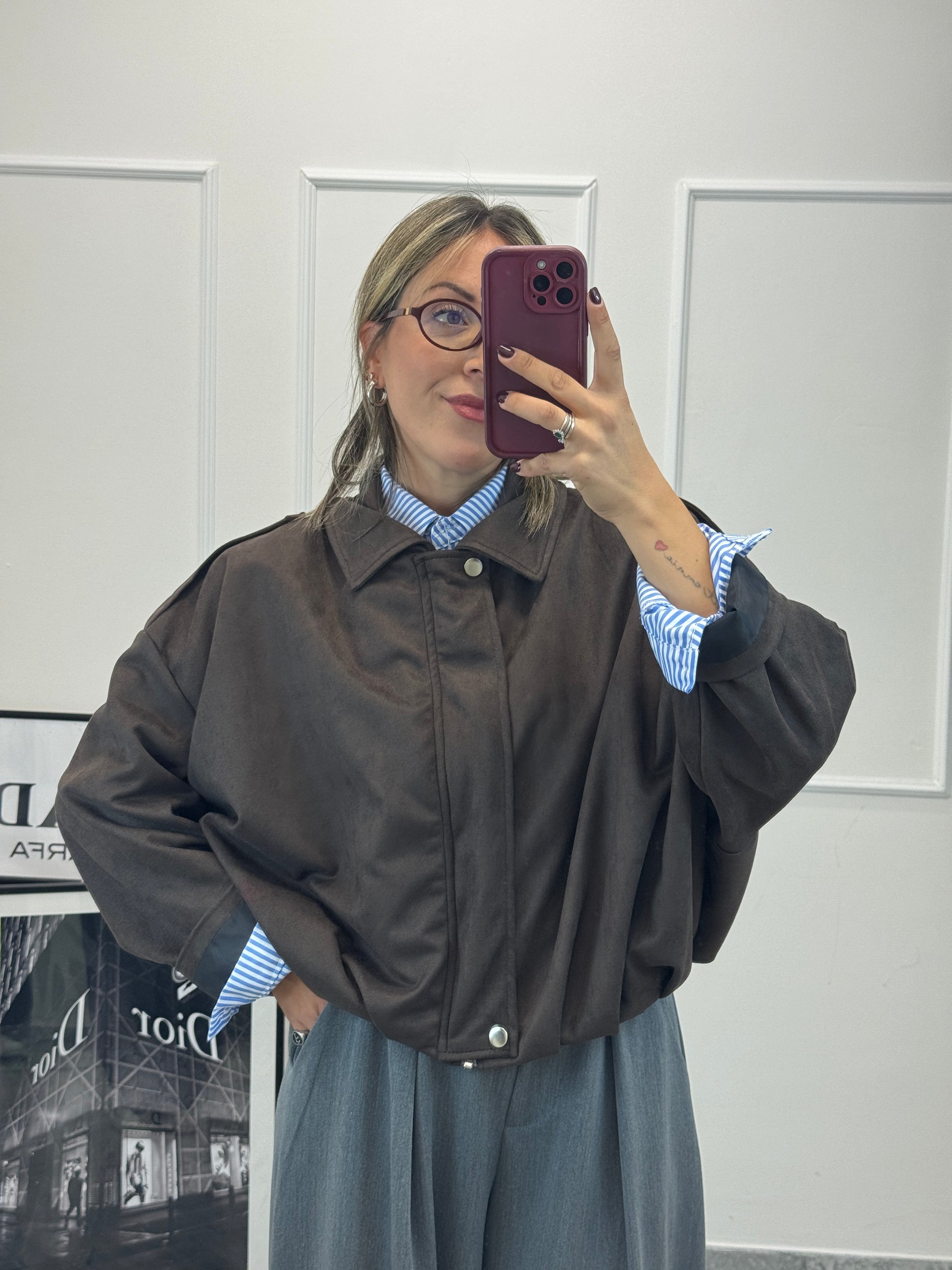 Bomberino in ecocamoscio fit oversize taglio pipistrello