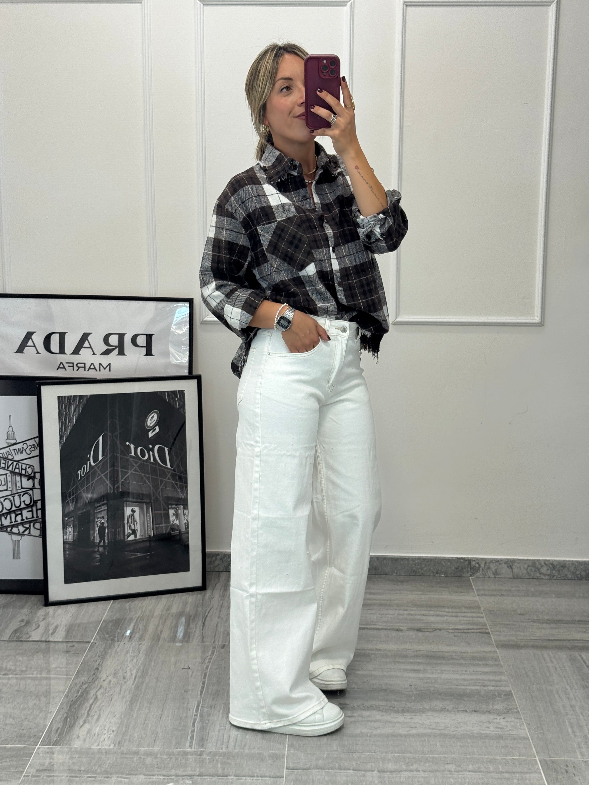 Jeans bianco in tela elasticizzata vita alta