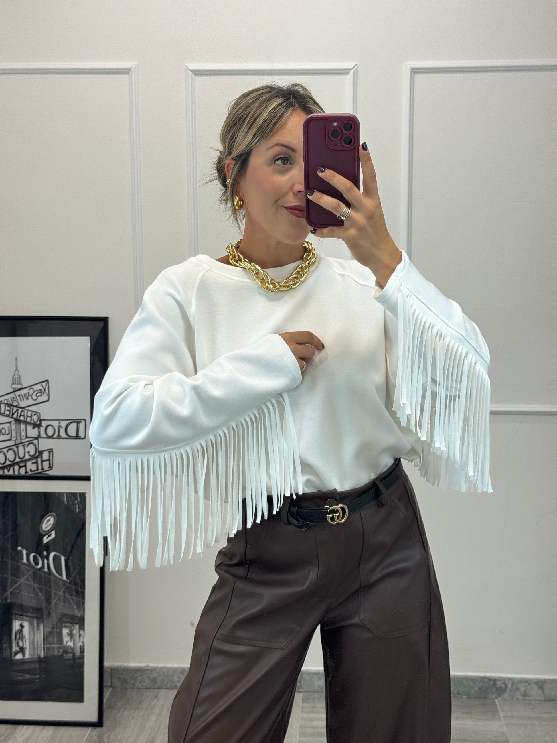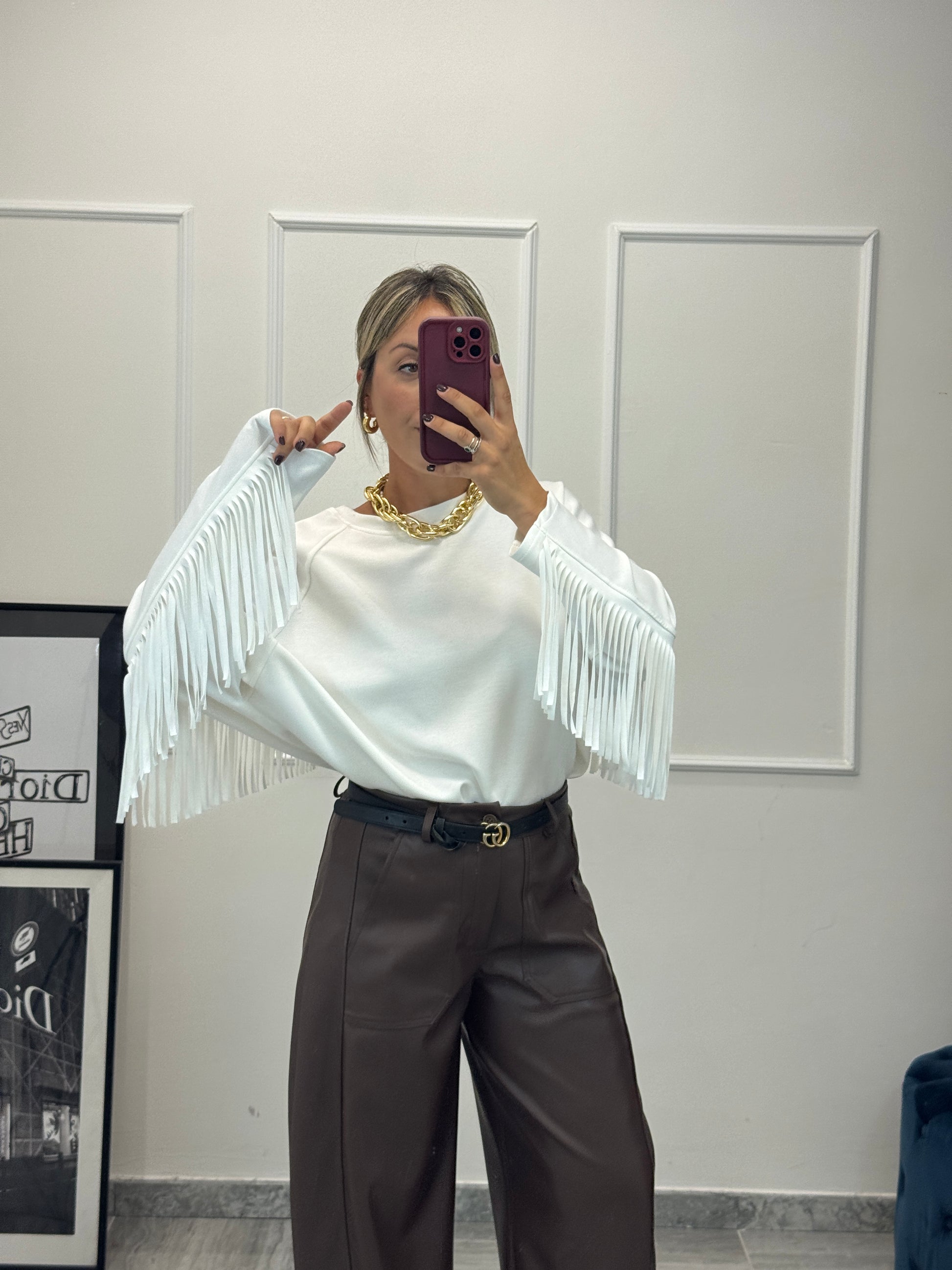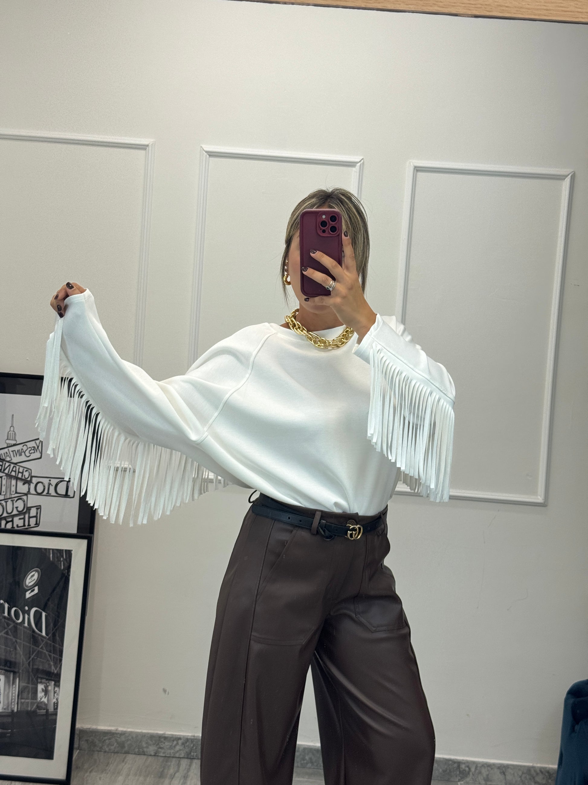 Maglia/Felpa vestibilità morbida con frange