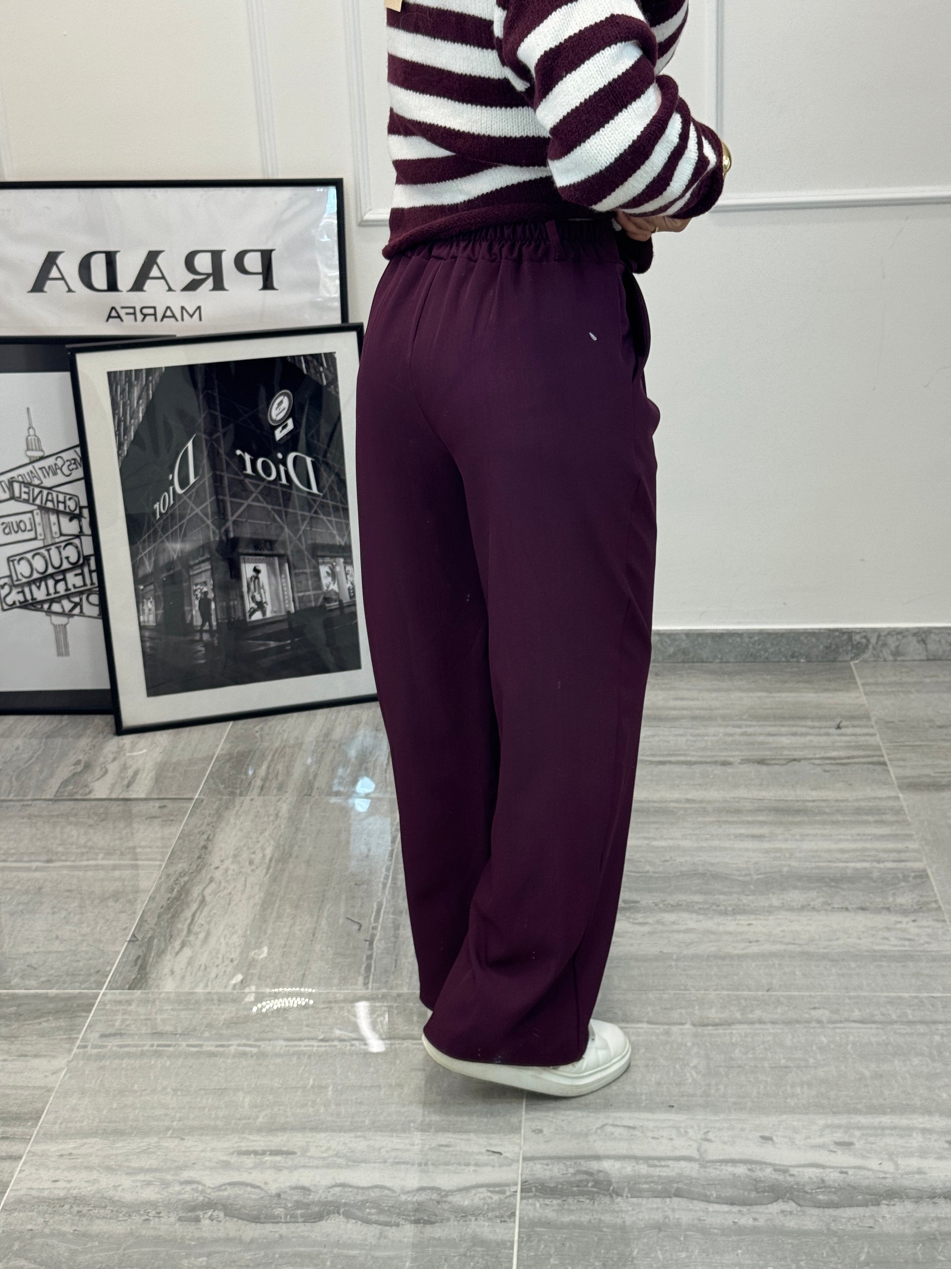 Pantalone gamba dritta con elastico dietro