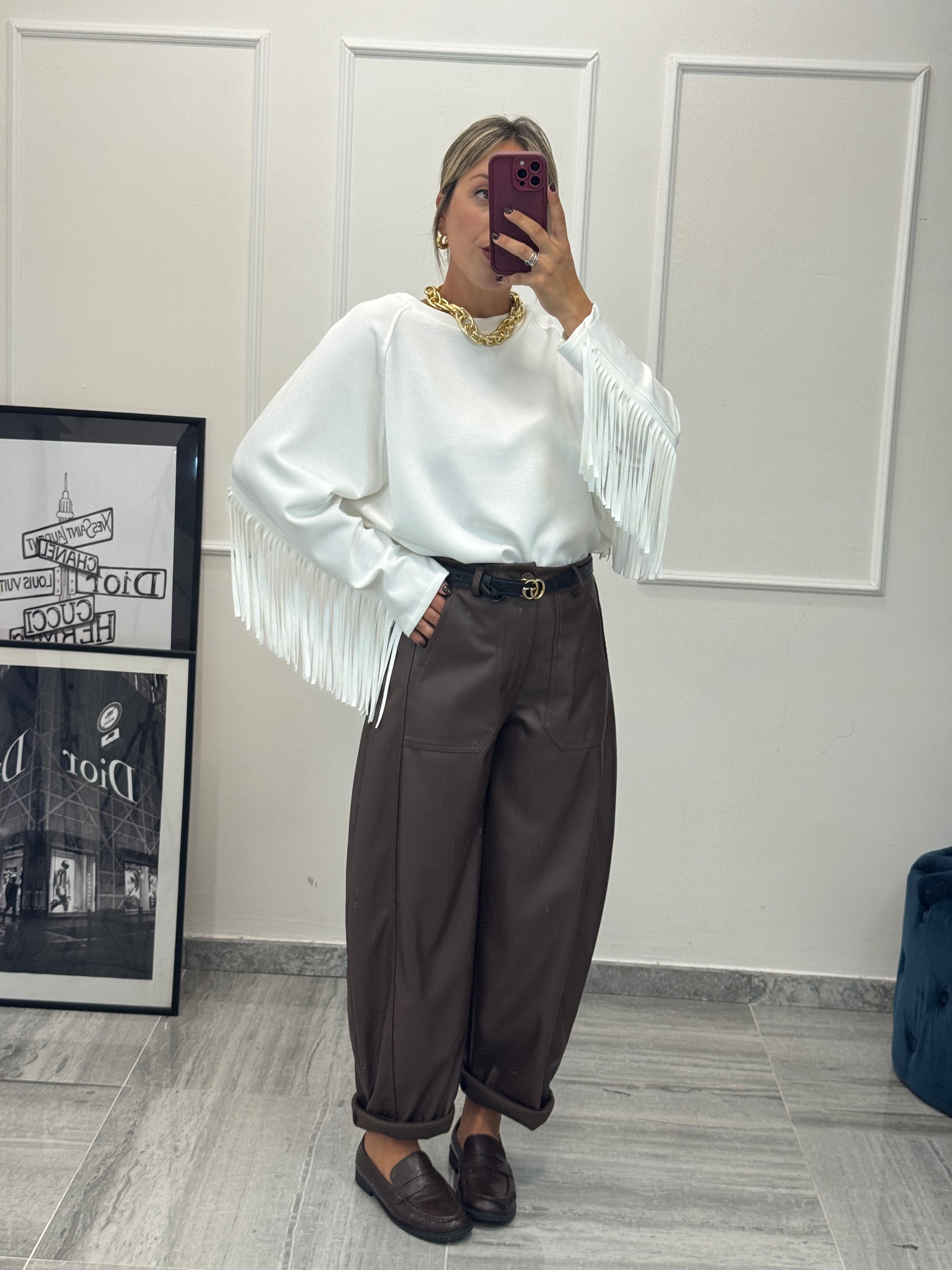 Pantalone ecopelle modello ballon con elastico dietro. Indosso M/L