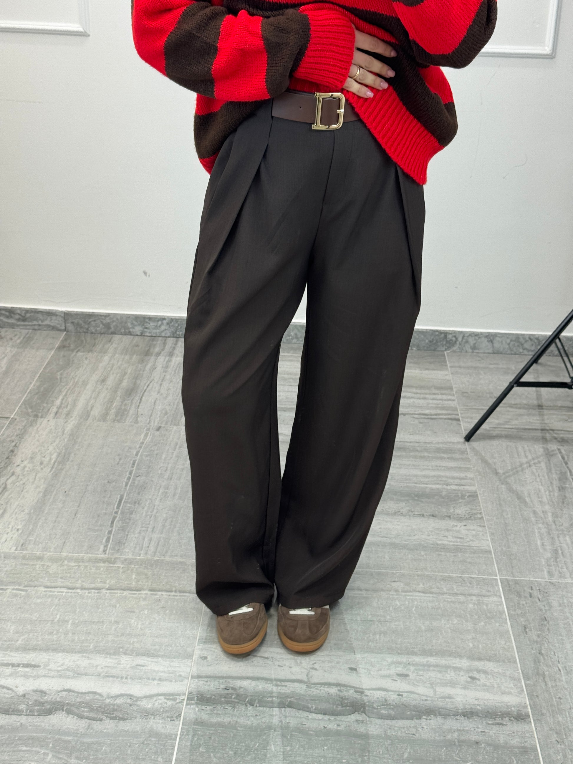 Pantalone gamba dritta con cinta inclusa. Elastico dietro