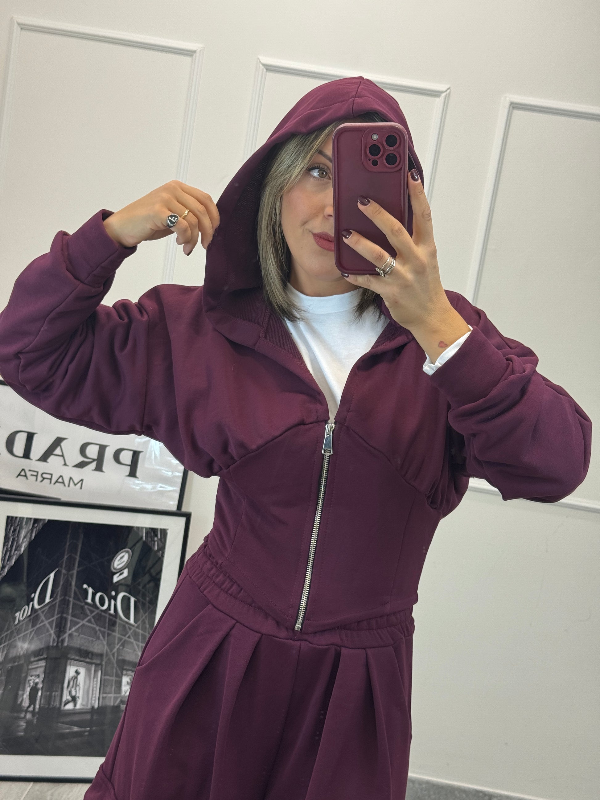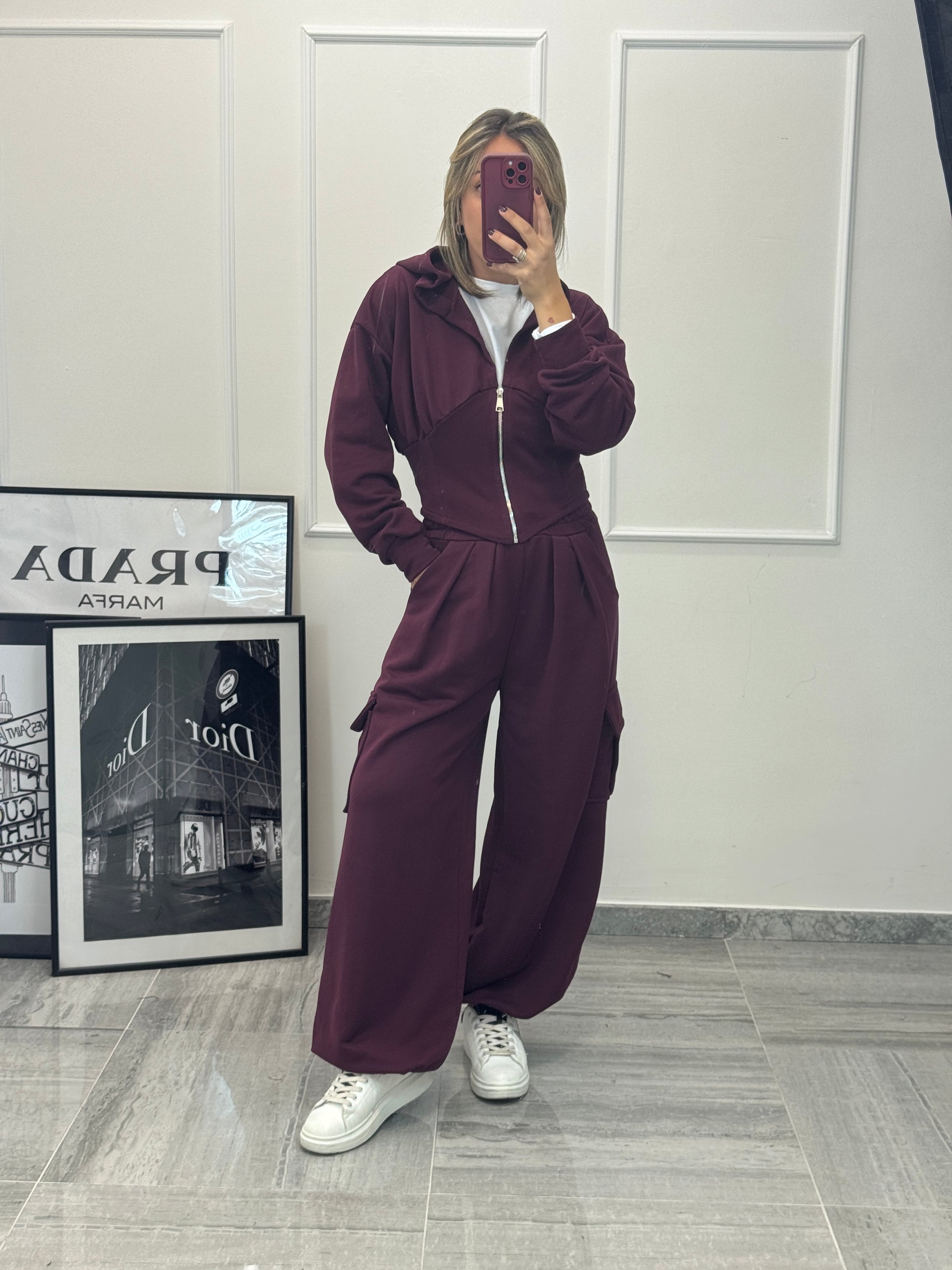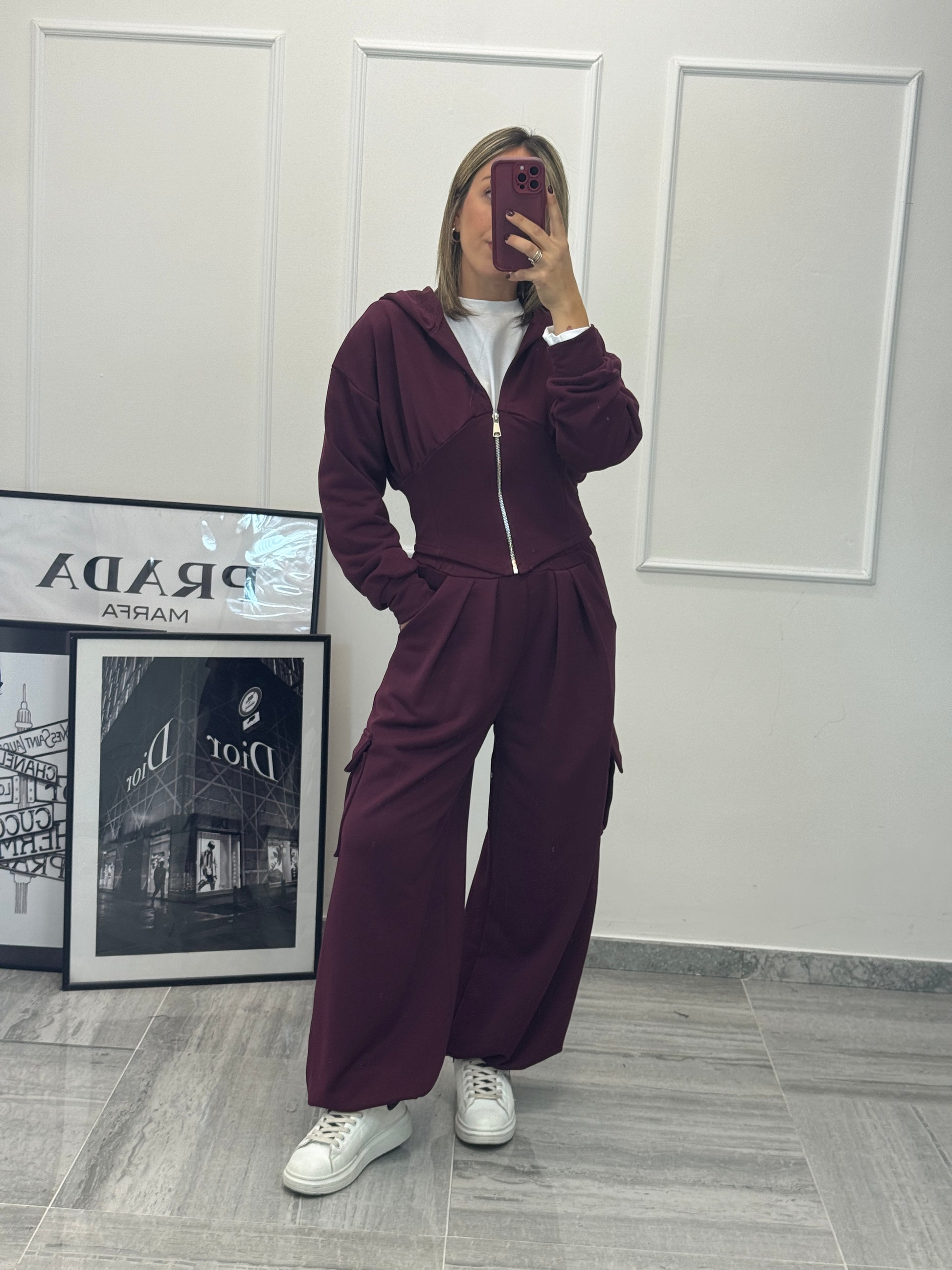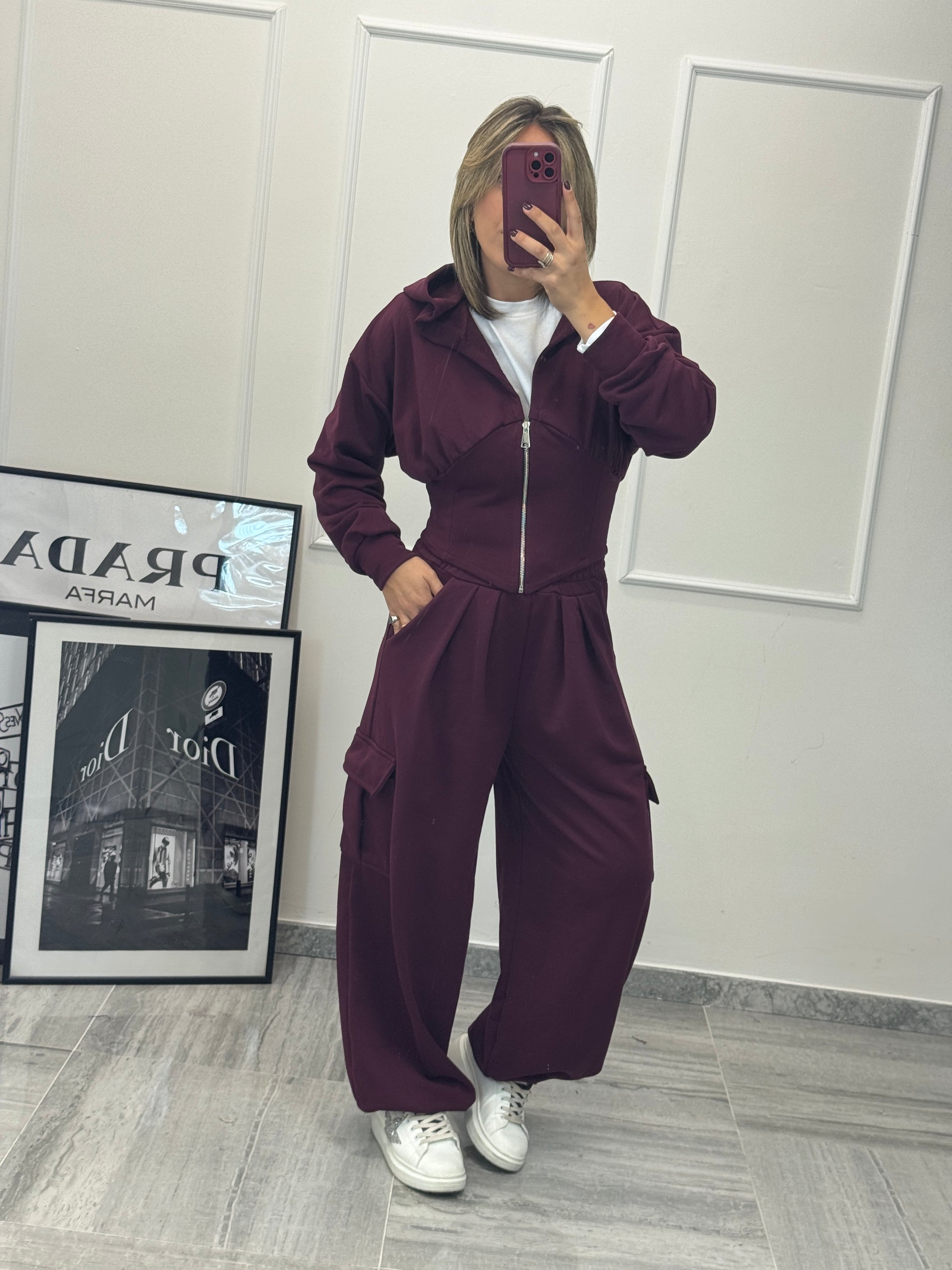 Coordinato di tuta in cotone garzato composta da pantalone cargo oversize e felpa con cappuccio avvitata
