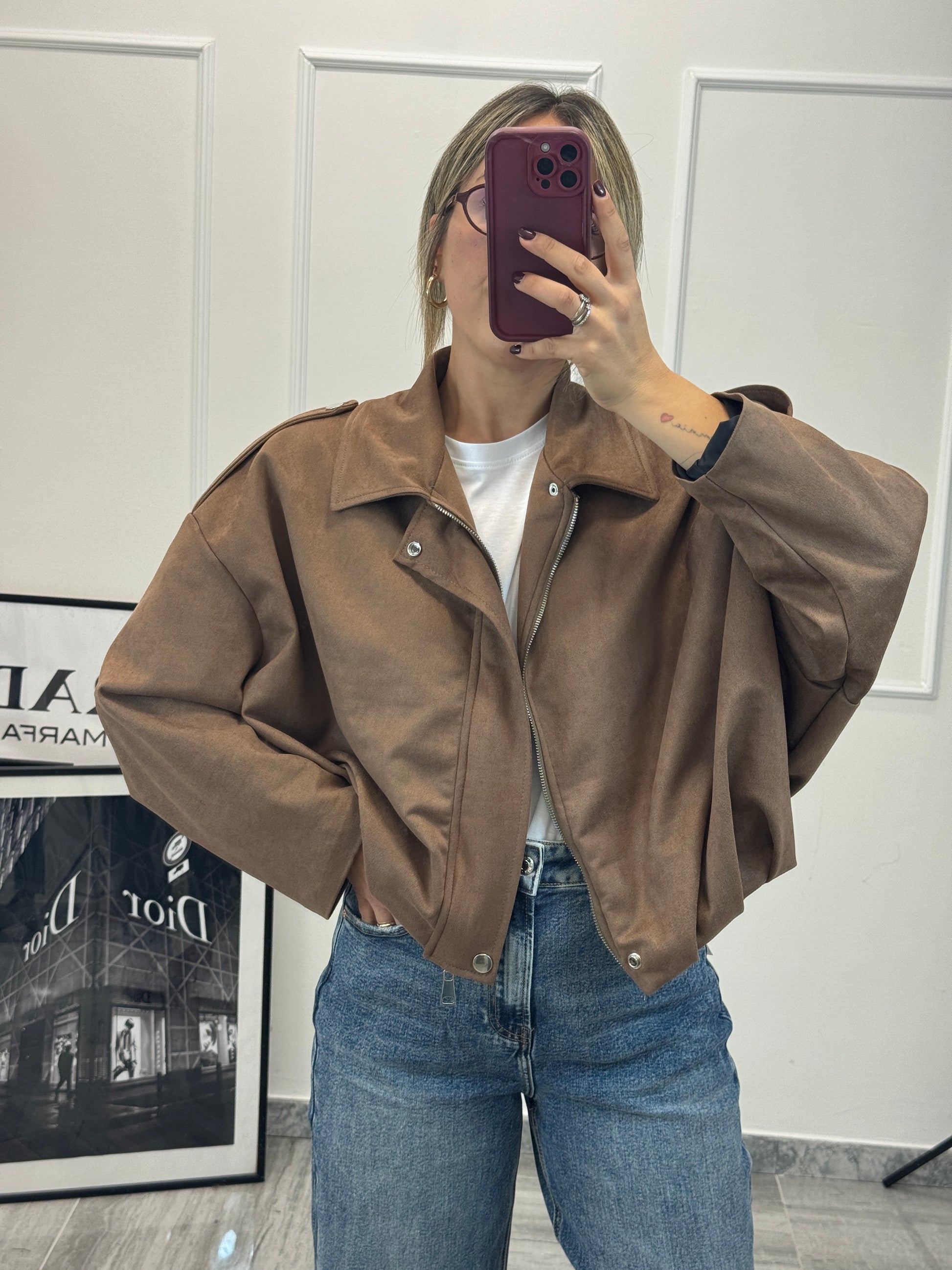 Bomberino in ecocamoscio fit oversize taglio pipistrello
