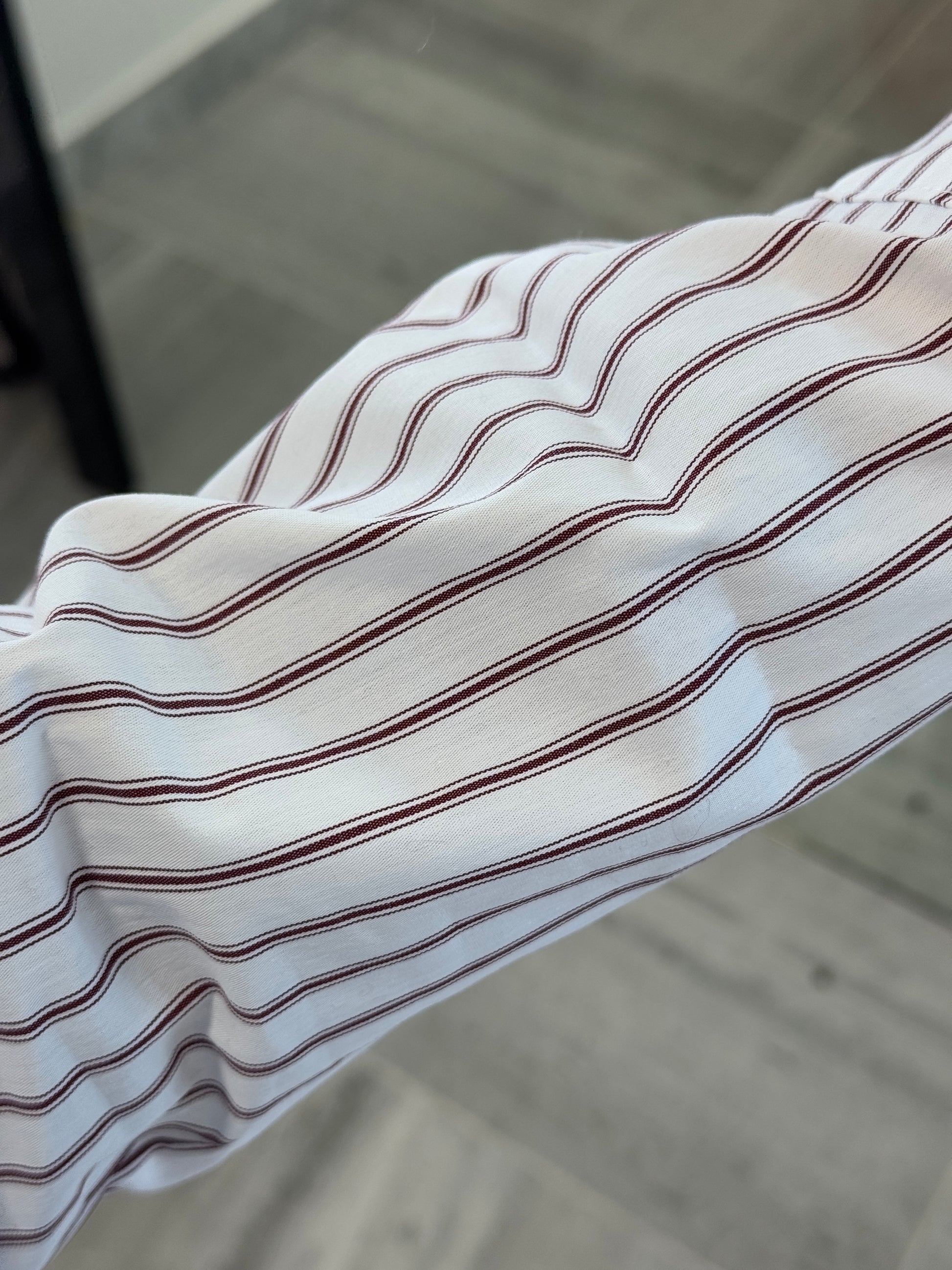 Camicia 100% cotone fit morbido bianca righe bordeaux