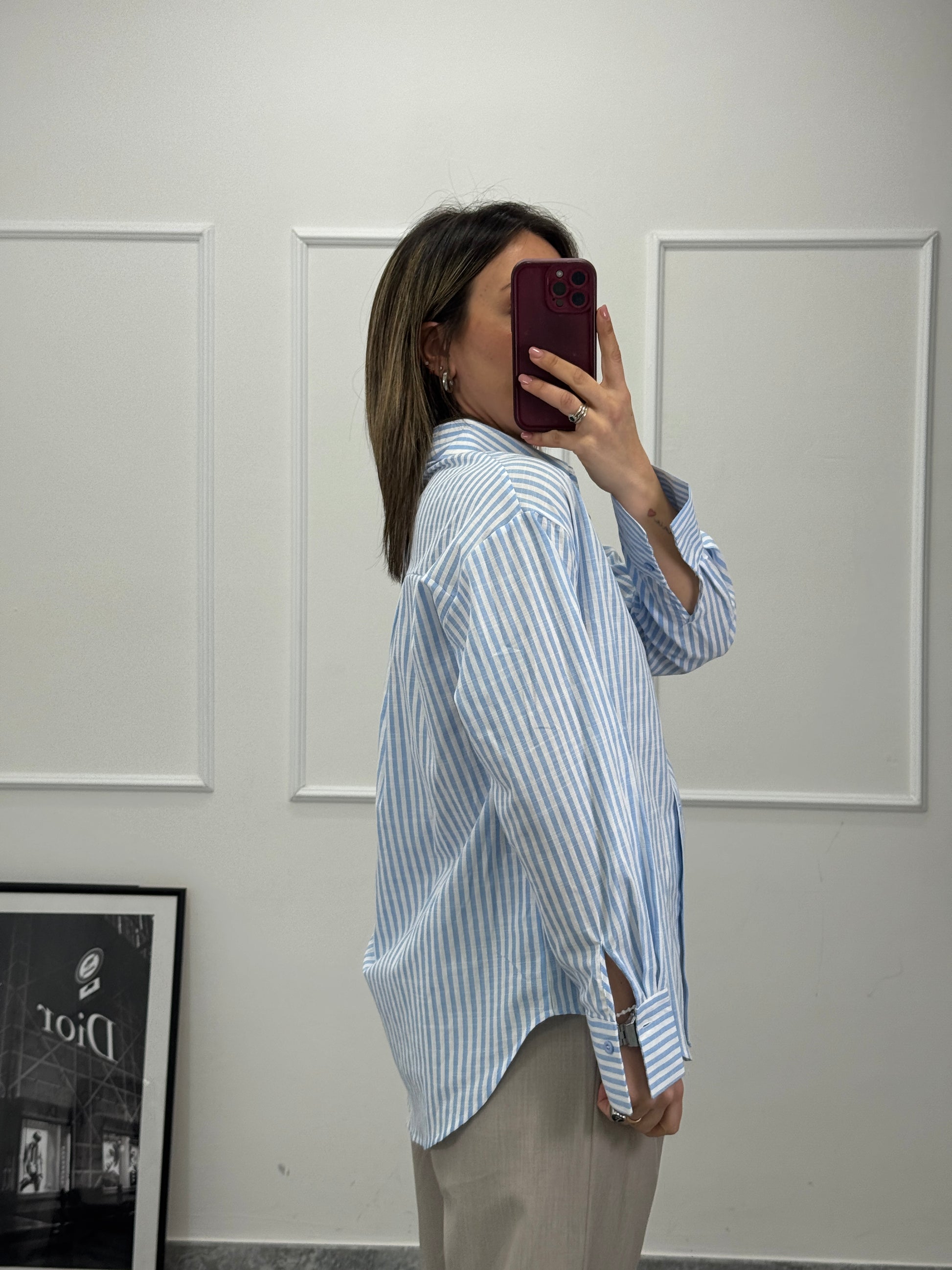 Camicia a righe 75% cotone 25% poli non troppo over indosso S/M la differenza tra le taglie è minima