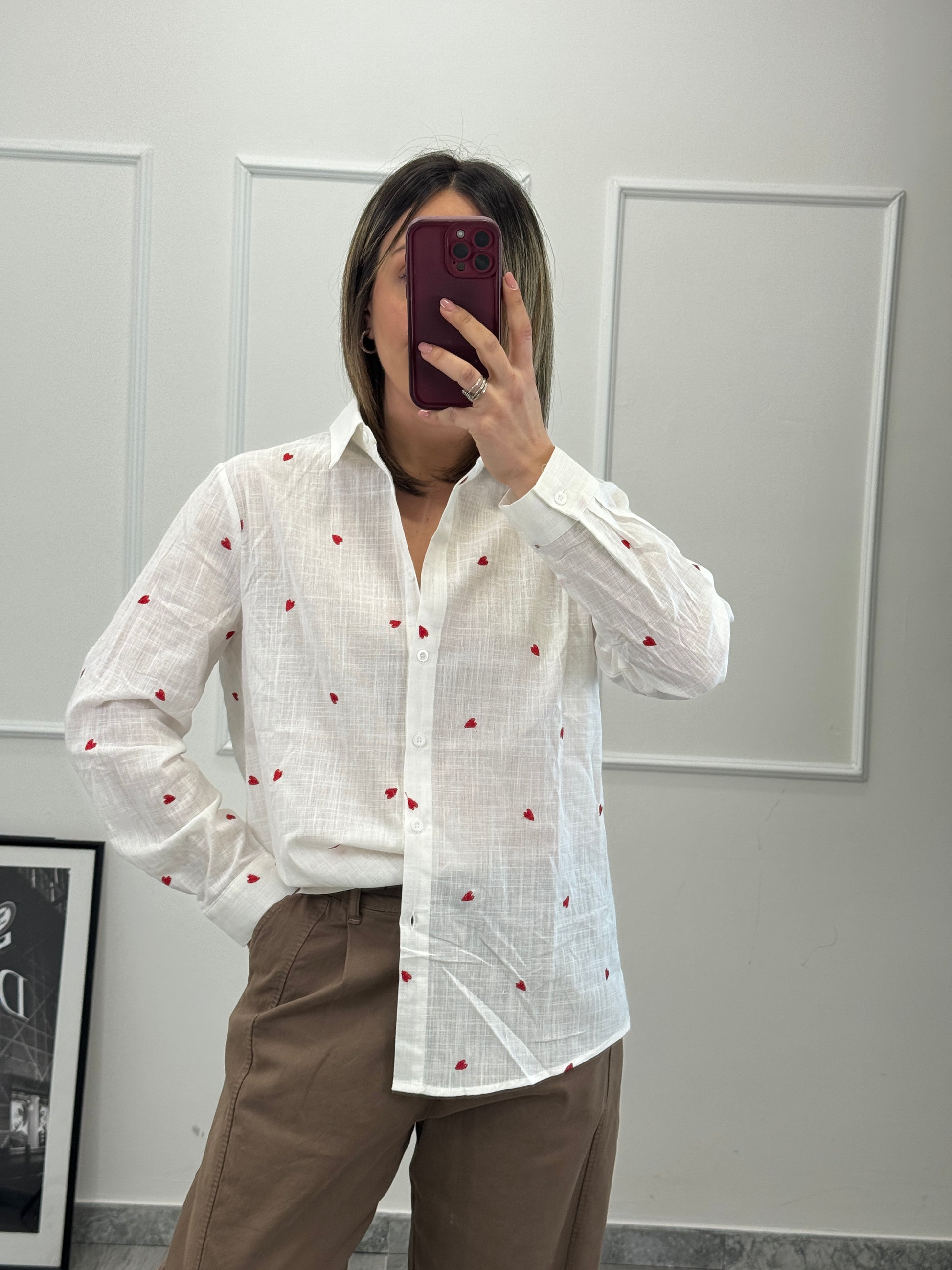 Camicia 100% cotone con cuoricini cuciti. La differenza tra le due taglie è minima