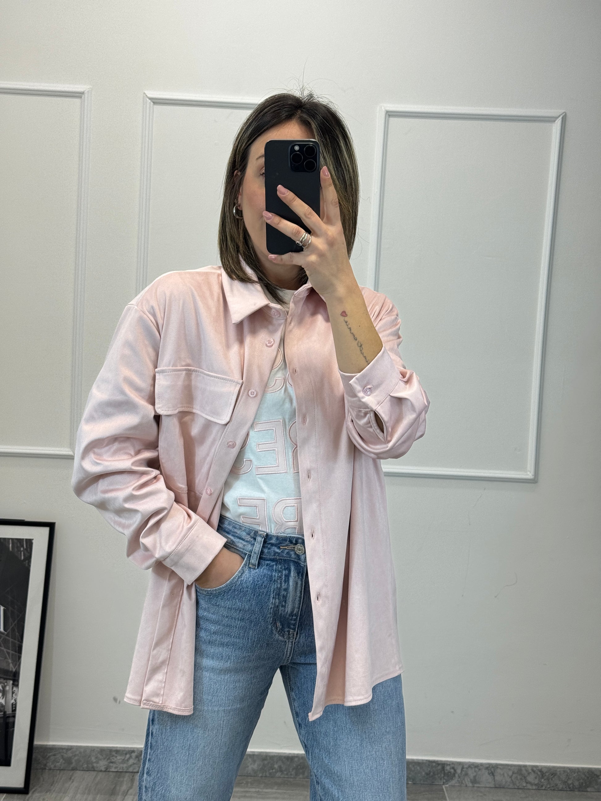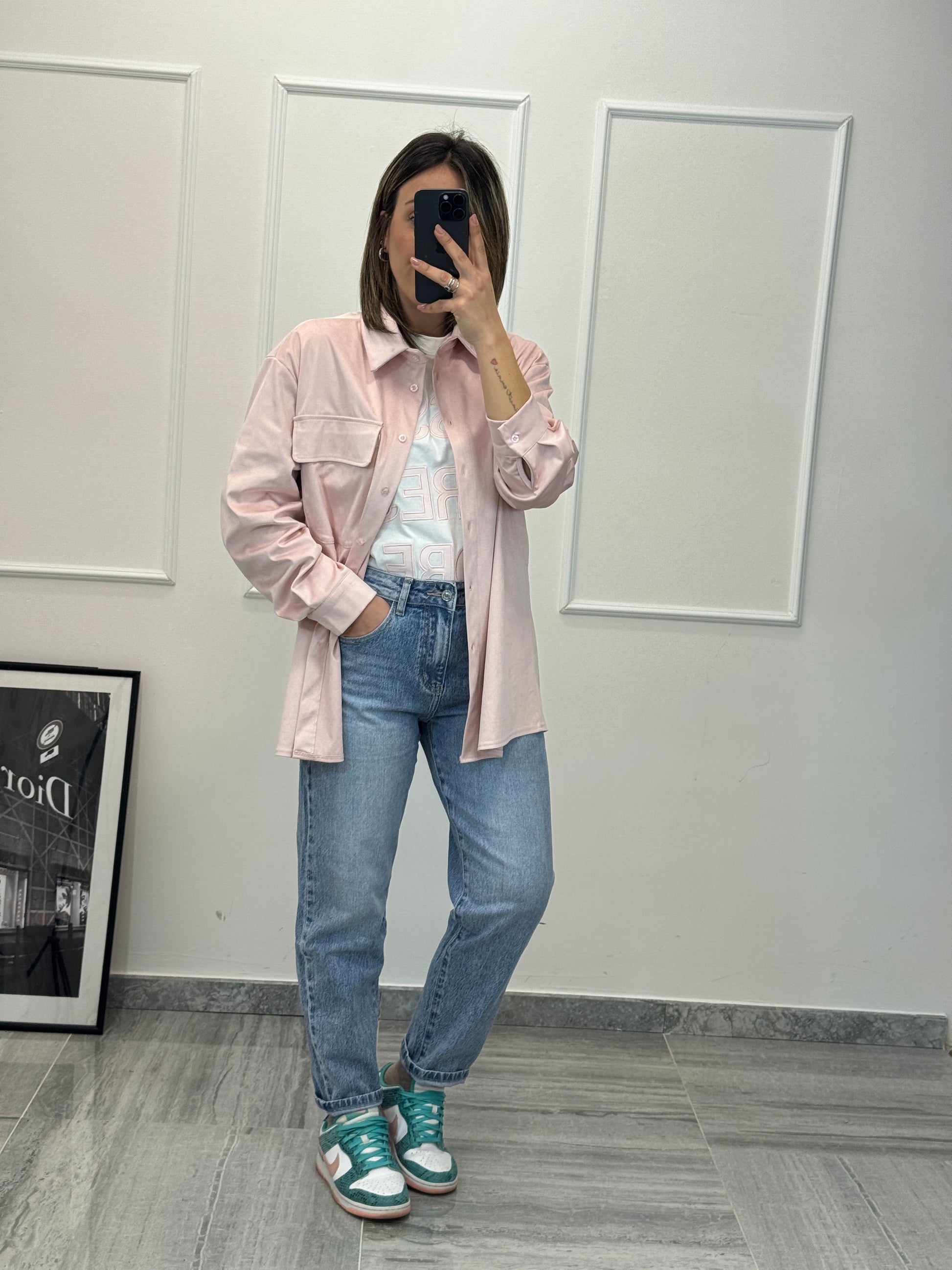 Camicia oversize in ECOSUEDE morbida Premium quality 92% poly 8% elastan