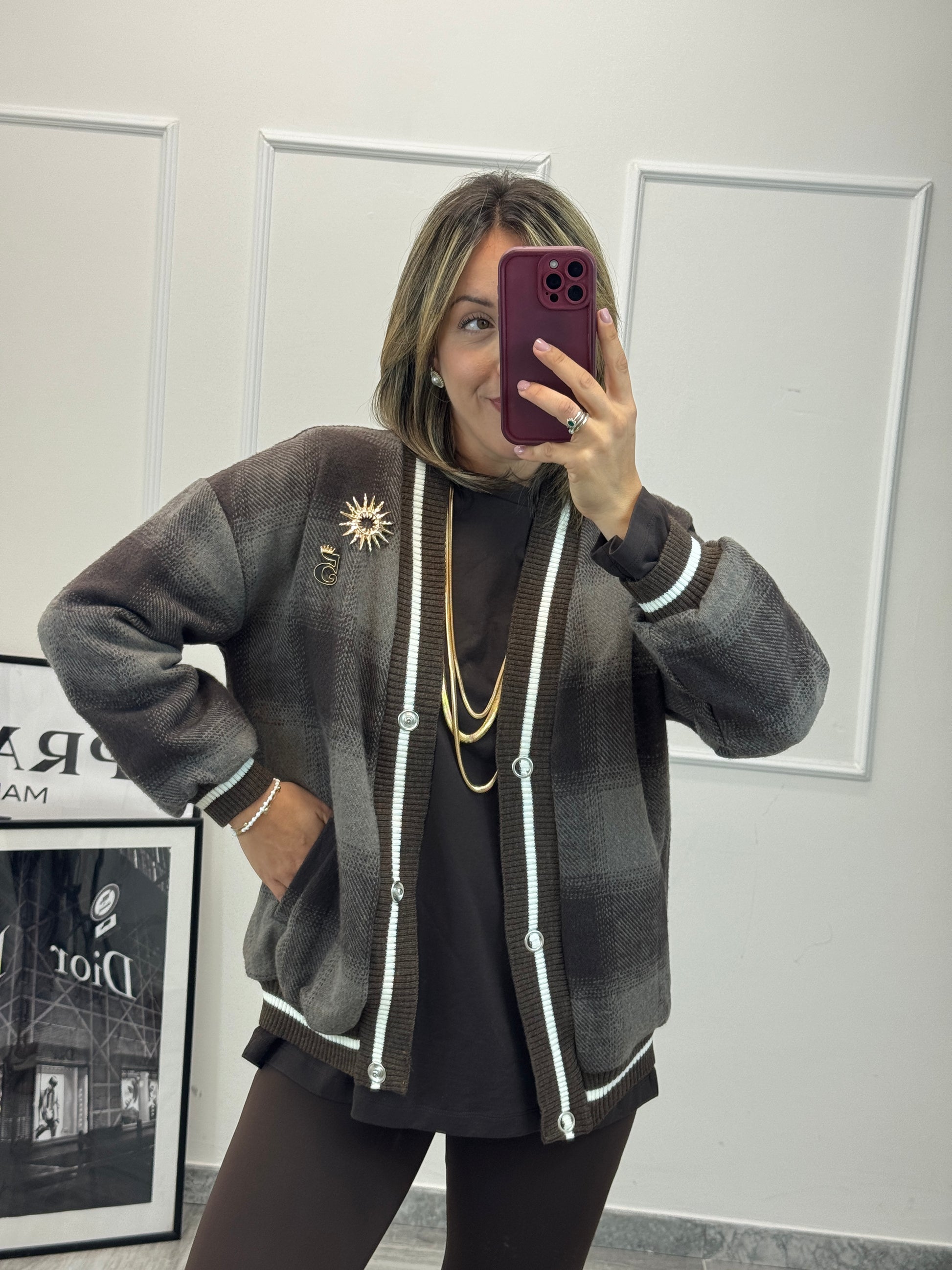 Bomber modello college mezza stagione con 3 bottoni leggermente oversize