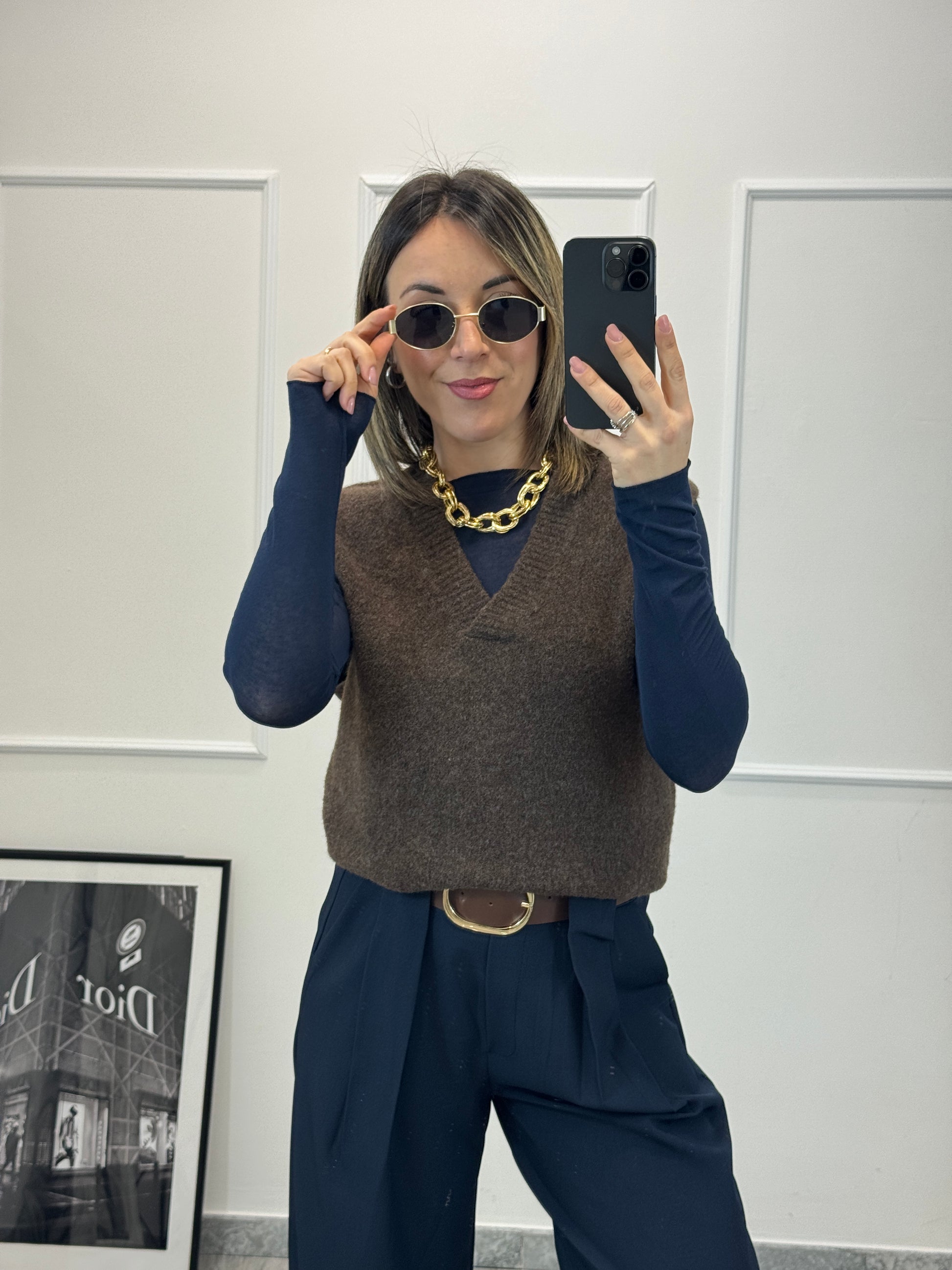Gilet morbido scollo a V 68% acrilico 12% poliestere 10% nylon 7% lana 3%spandex