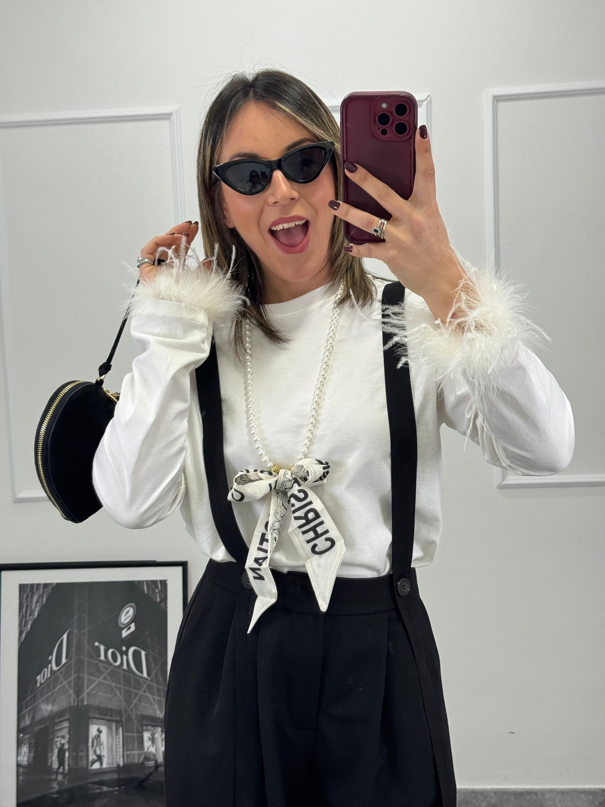 Maglia 100% cotone maniche lunghe con polsino con piume
