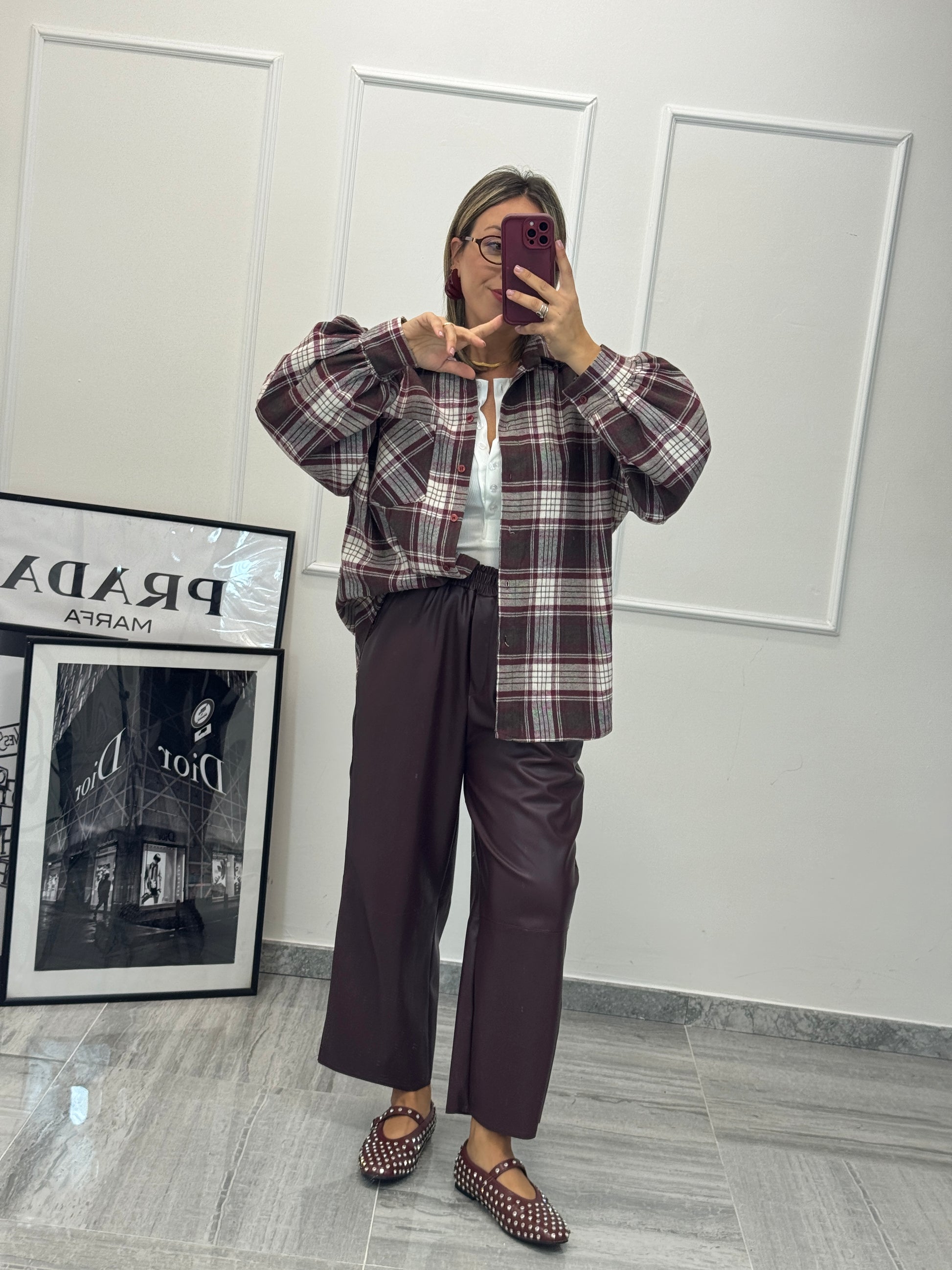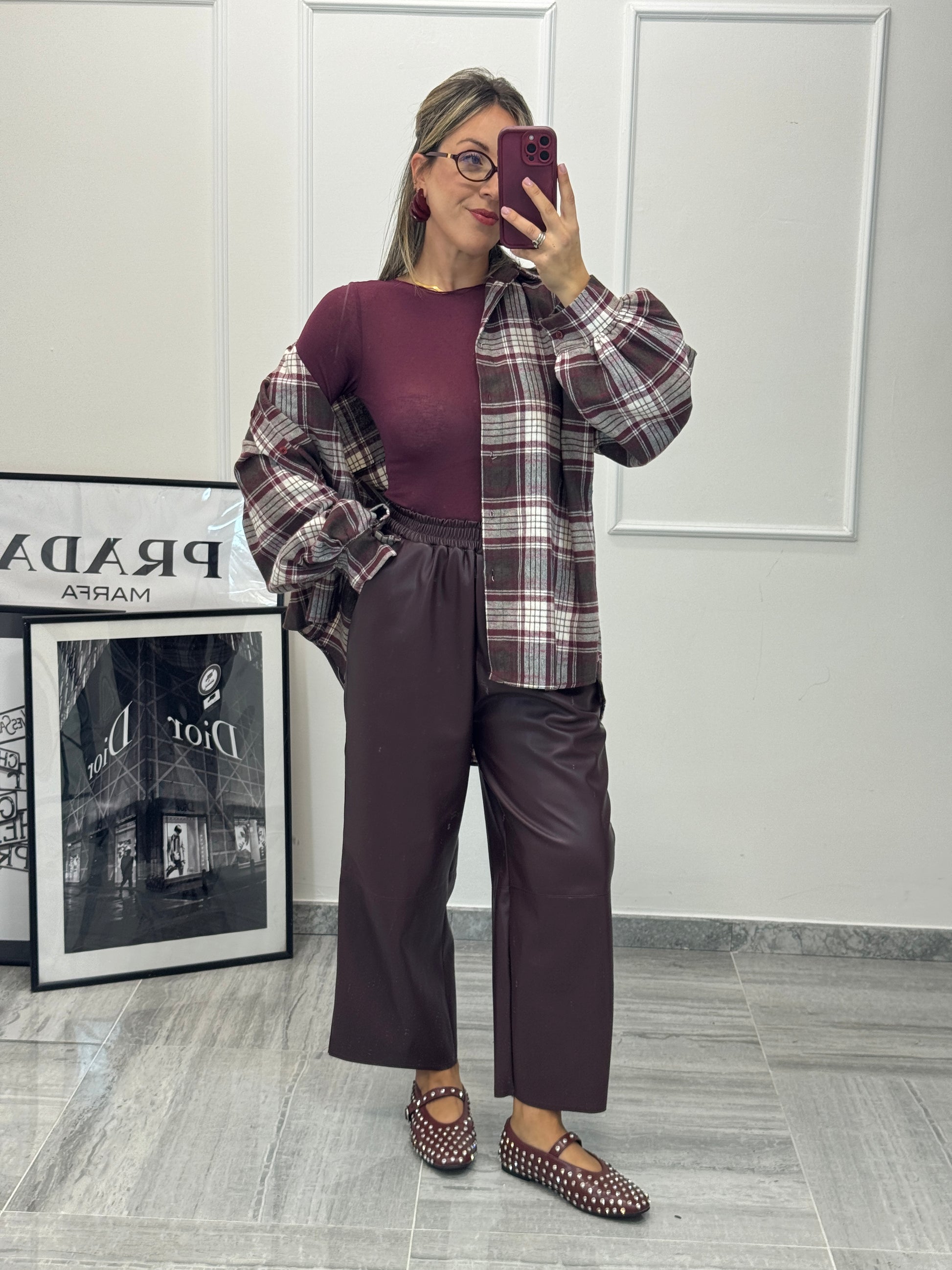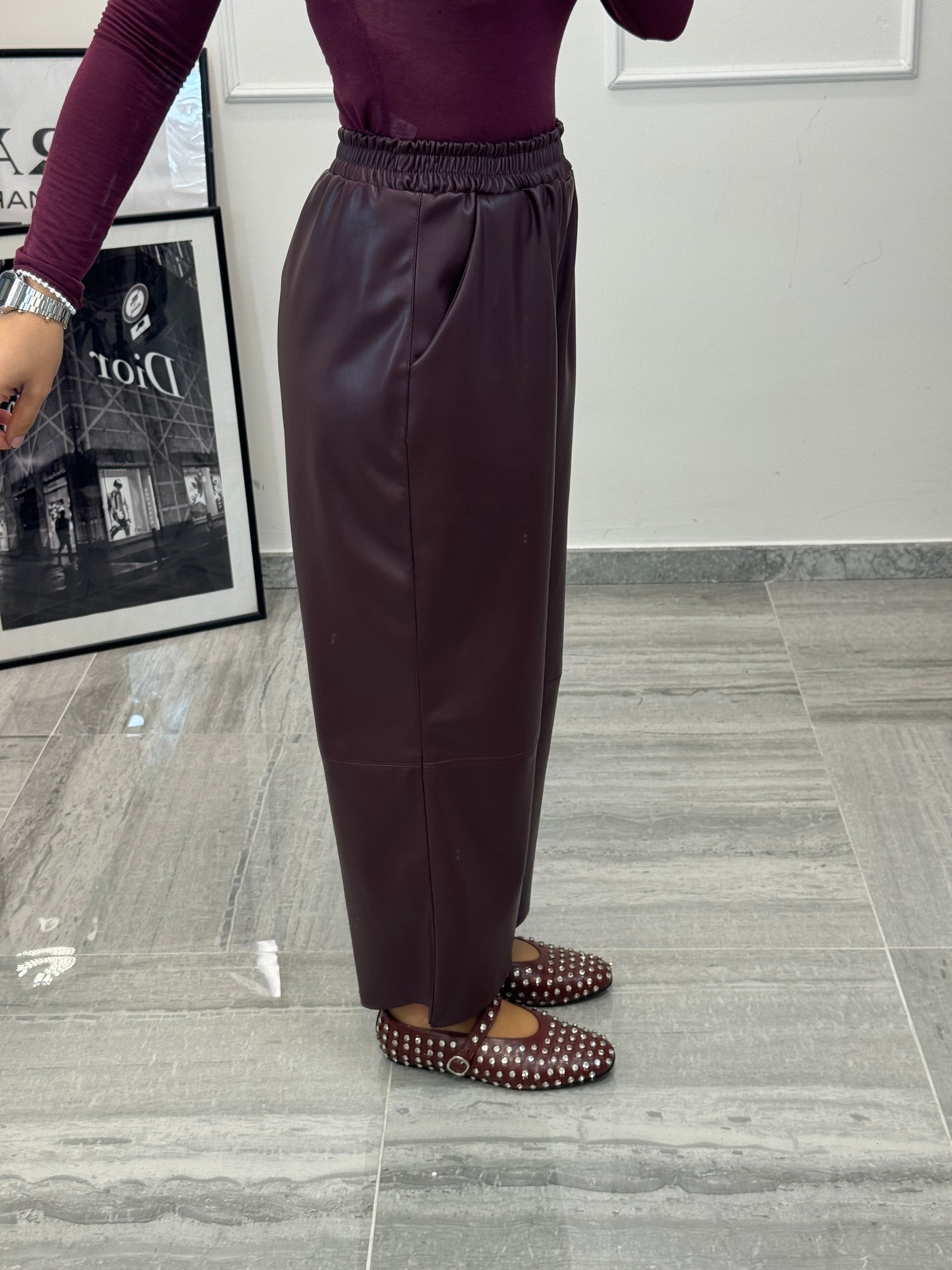 Pantalone in ecopelle gamba dritta con elastico in vita