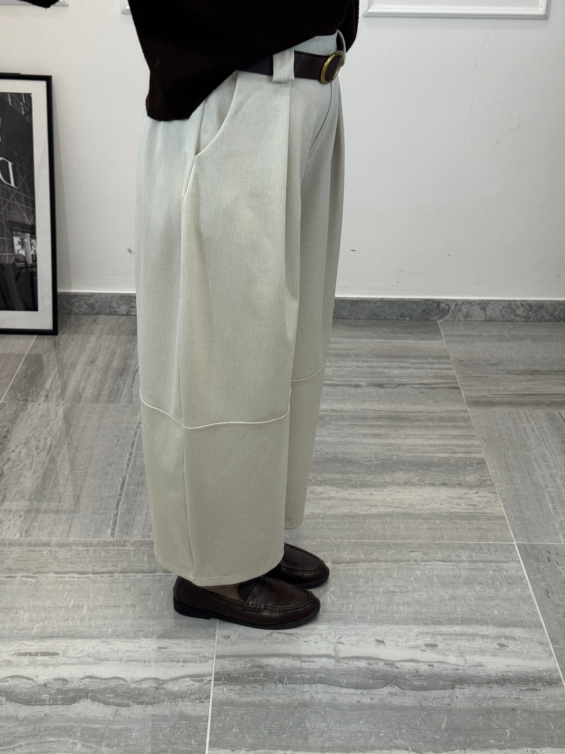 Pantalone modello ovetto con elastico in vita e cinta inclusa tessuto leggero 100% poli
