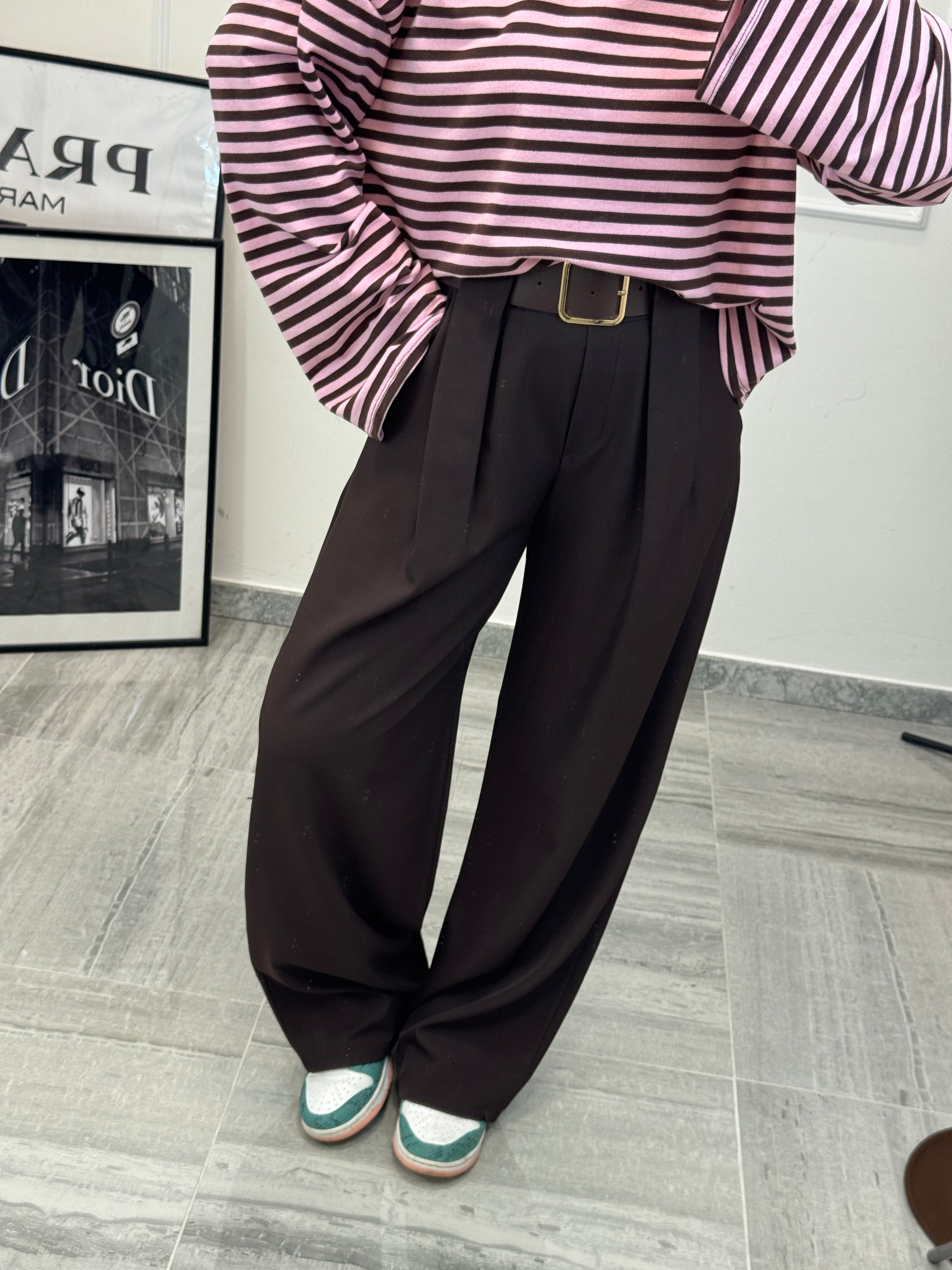 Pantalone palazzo con cinta inclusa elastico in vita