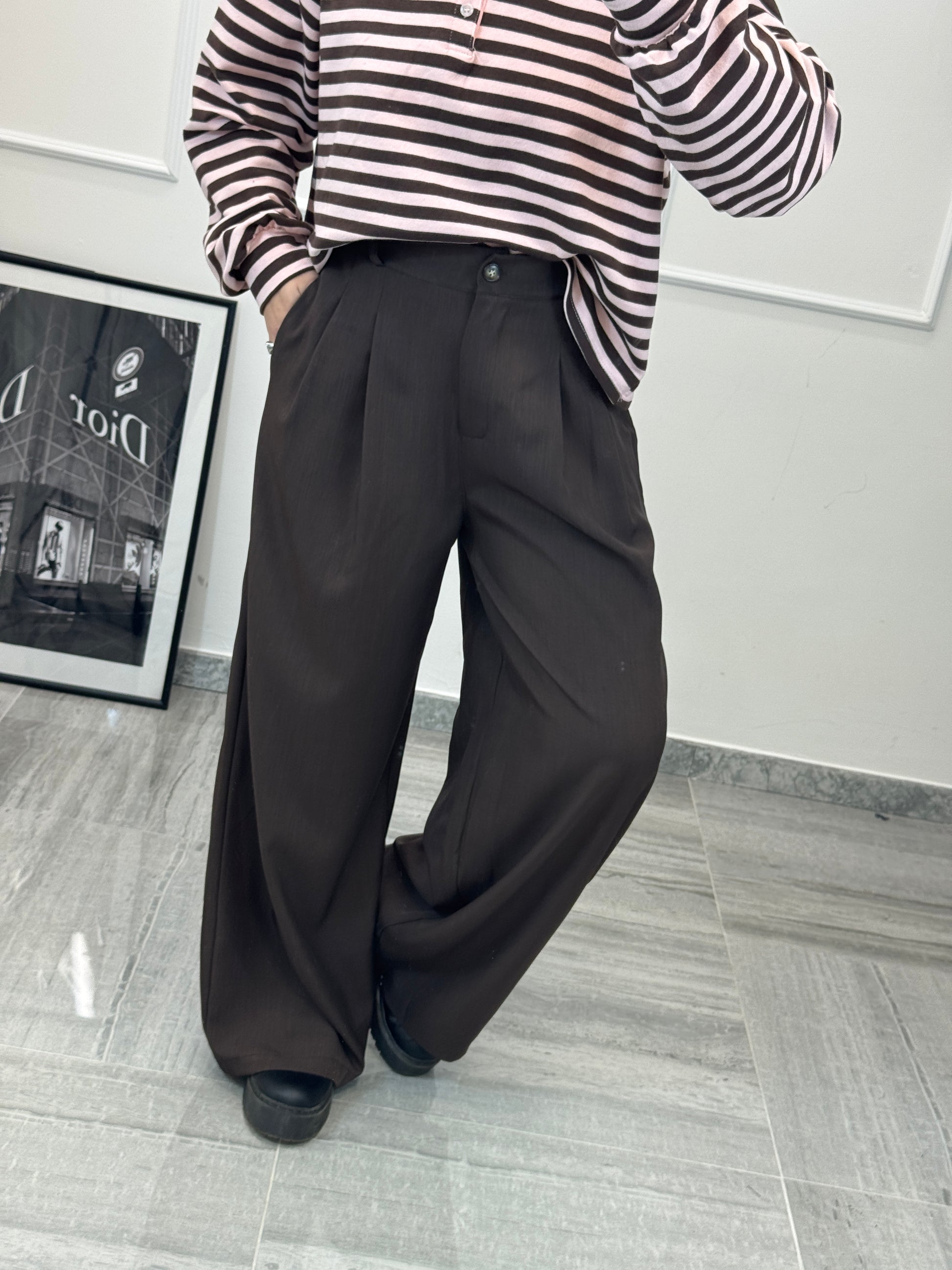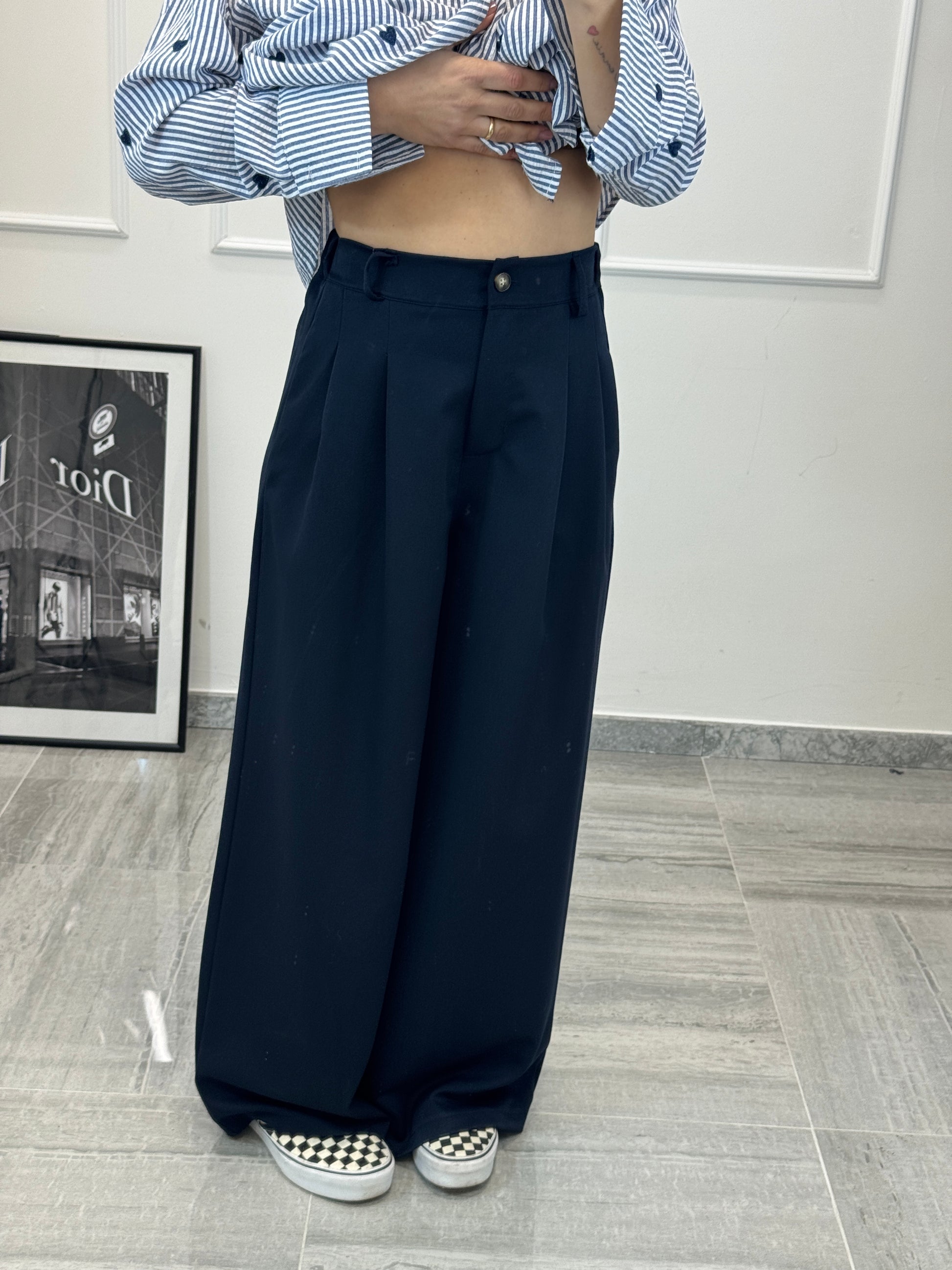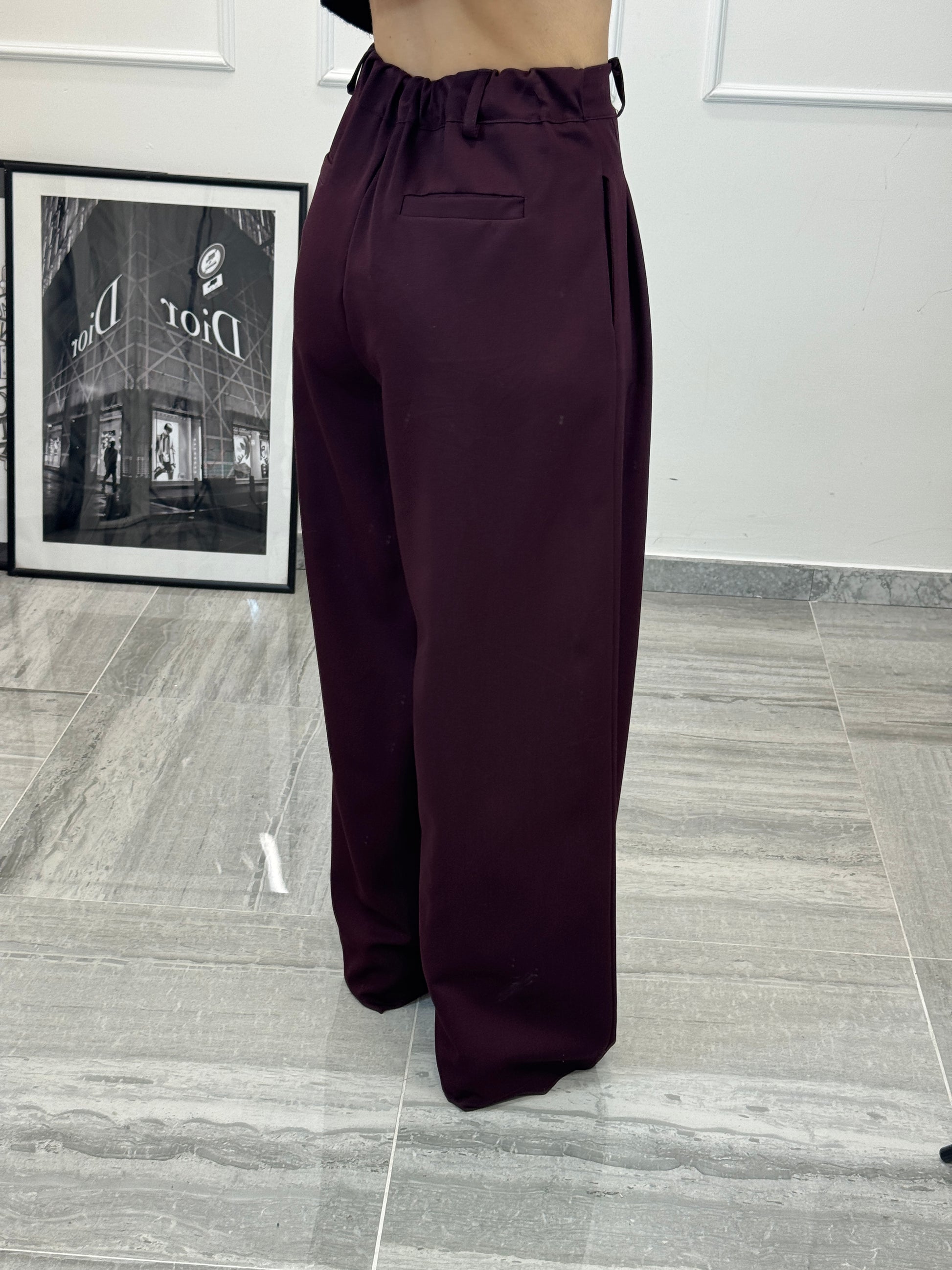 Pantalone palazzo con elastico in vita vestibilità morbida 77% poly 17% viscosa 6% elastan