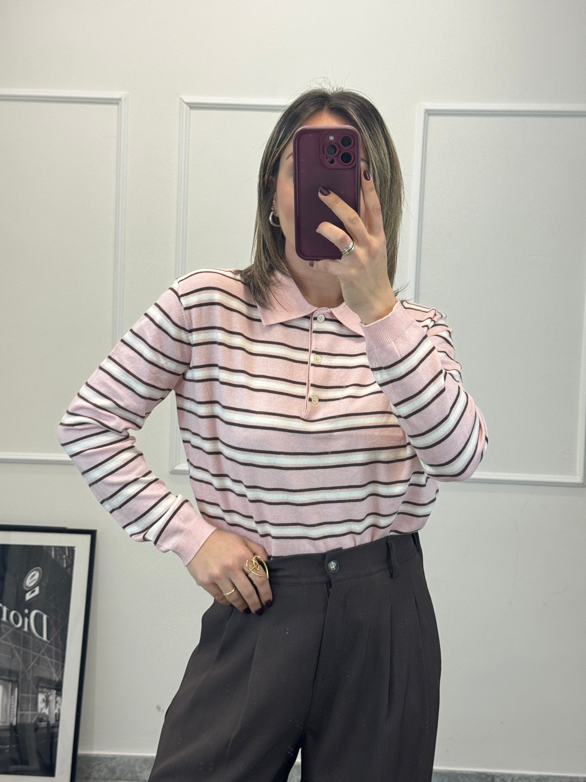 Polo a righe morbida 5% lana 15% poliestere 35% poliammide 45% viscosa