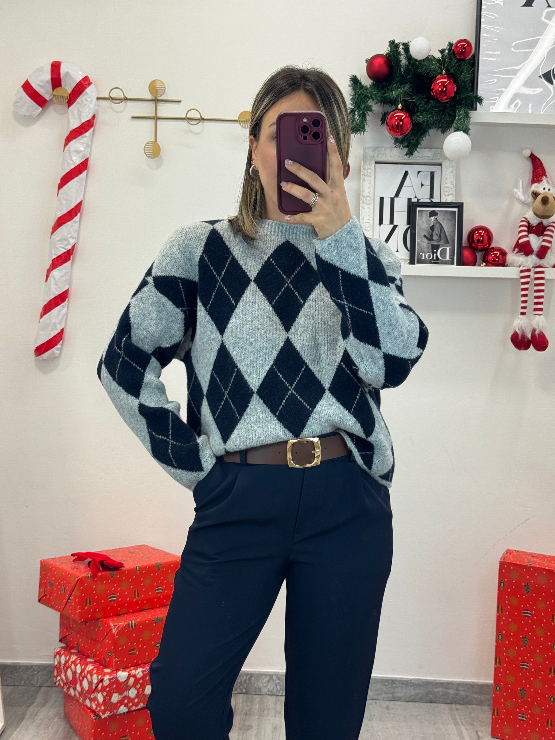 Maglioncino girocollo fantasia rombi modello scatolina 7% lana