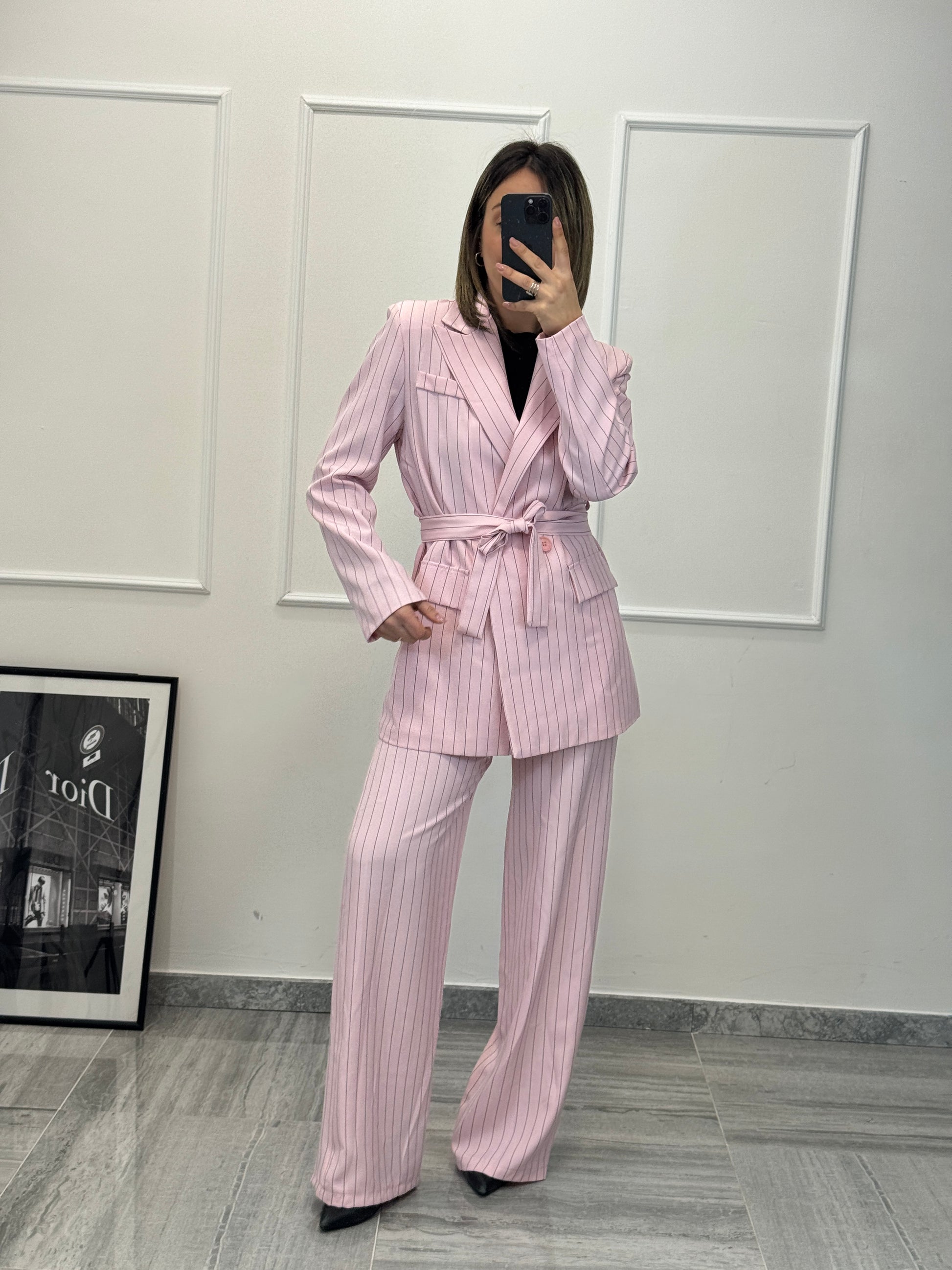 Tailleur composto da giacca doppiopetto con cinta e pantalone con elastico dietro veste massimo la taglia 42